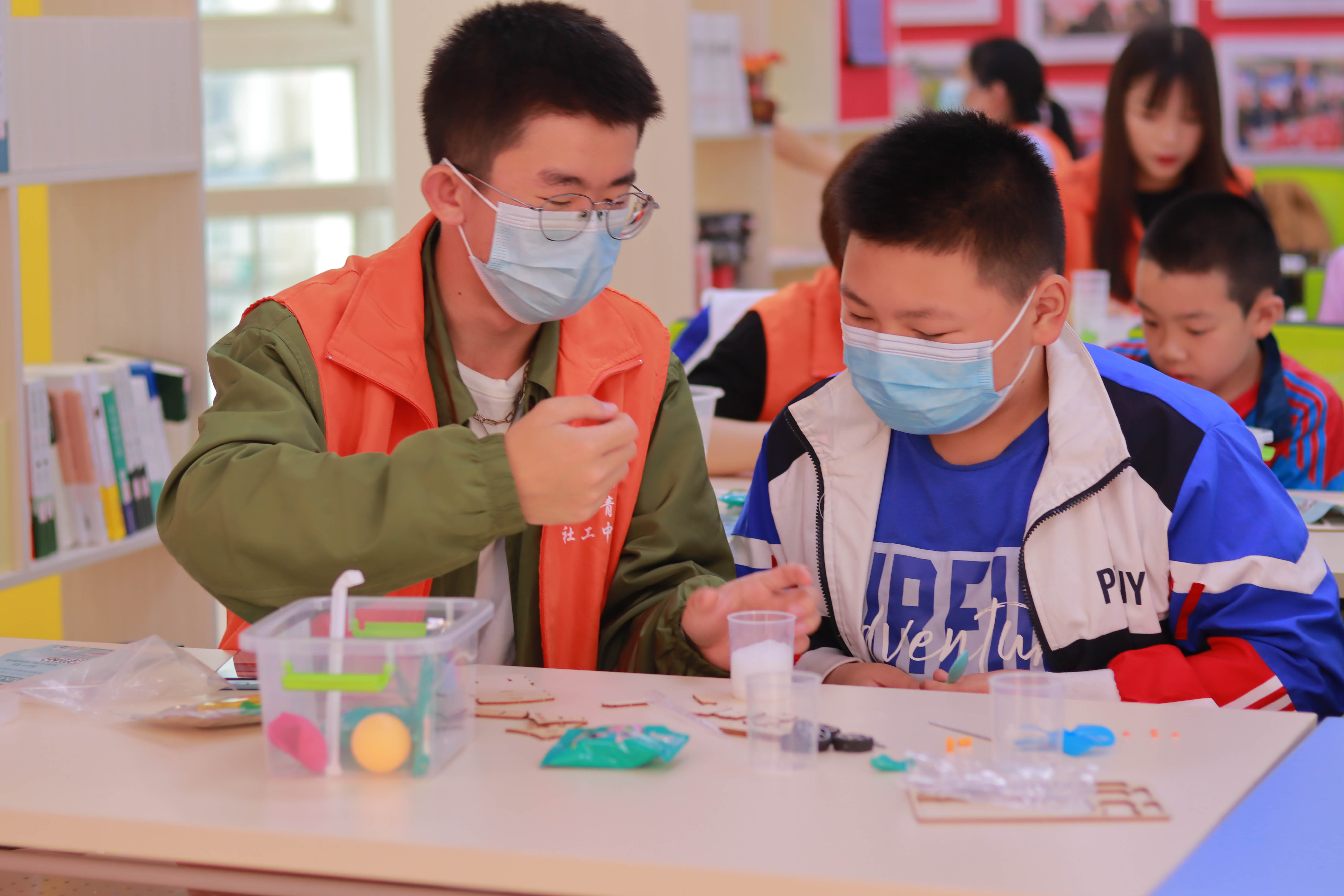 本网讯 5月23日,食品科技学院青年志愿者协会组织志愿者前往友谊路青少年宫开展志愿活动。与小朋友们一起完成科技小作品,进行趣味科学实验,共同制作美味寿司。