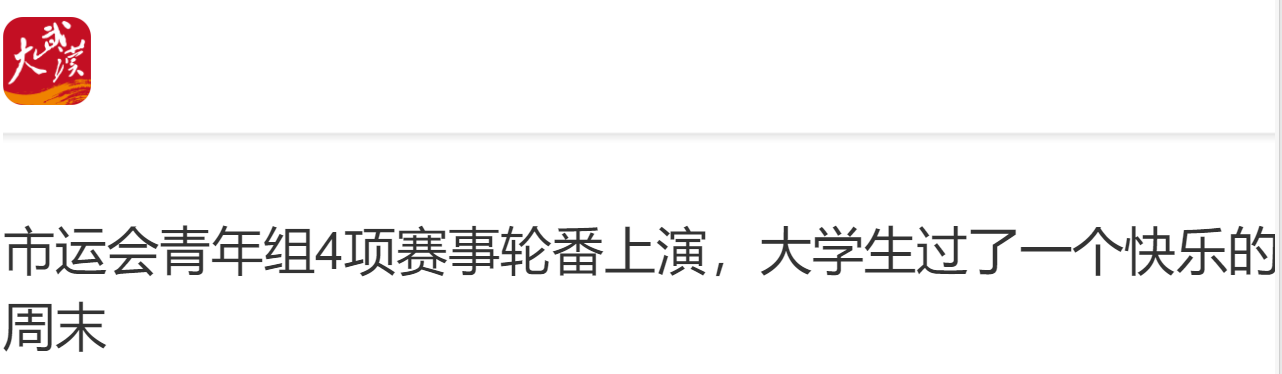 本届市运会青少年体育类赛事,在少儿组的基础上首次增设青年组和社会俱乐部组,其中青年组比赛共设足球、篮球、排球等9个项目,参赛队员都是武汉城市职业学院、江汉大学、bwin必赢中国官网、武汉软件工程学院等4所市属高校的学生,该组的比赛实际上相当于市属高校运动会。全部比赛将持续至今年10月底。