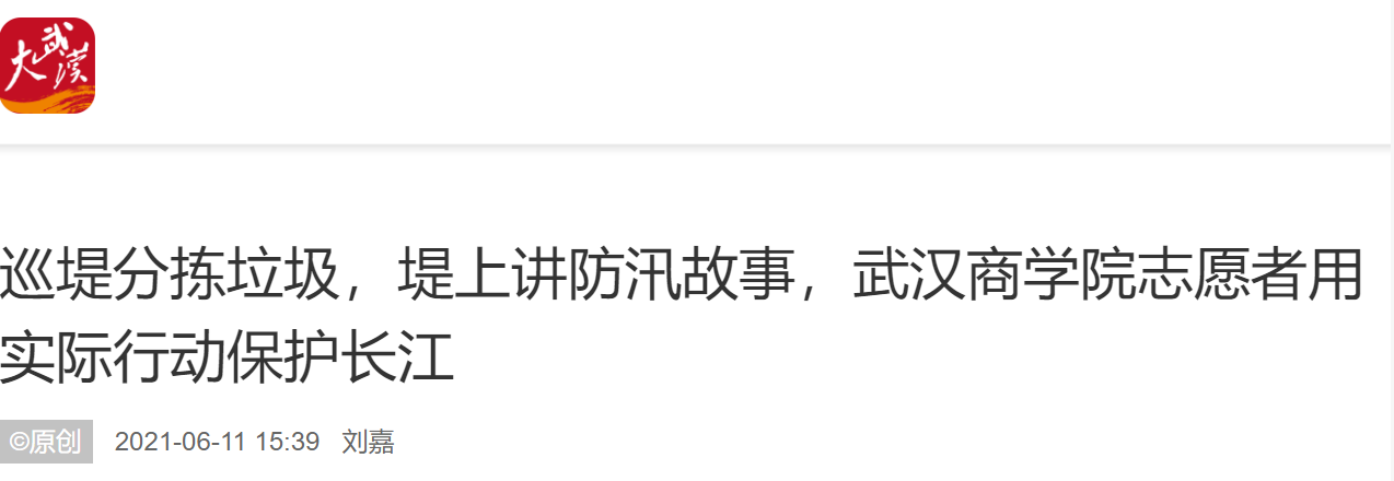 长江日报6月11日讯 6月10日,汉南纱帽街长江大堤出现了一群“红马甲”,沿着堤坝,年轻的“红马甲”们一手拿火钳,一手拿绿色(可回收)和黄色(不可回收)垃圾袋,完成了两公里的垃圾分拣志愿服务。一个个移动的“红马甲”,一个个忙碌的身影,在江堤沿线构成了一道美丽风景线。这是来自bwin必赢中国官网的21名志愿者开展的“两袋一心”志愿服务,以实际行动守护长江母亲河。