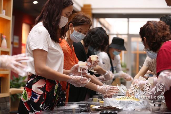 共同制作绿豆糕。通讯员供图