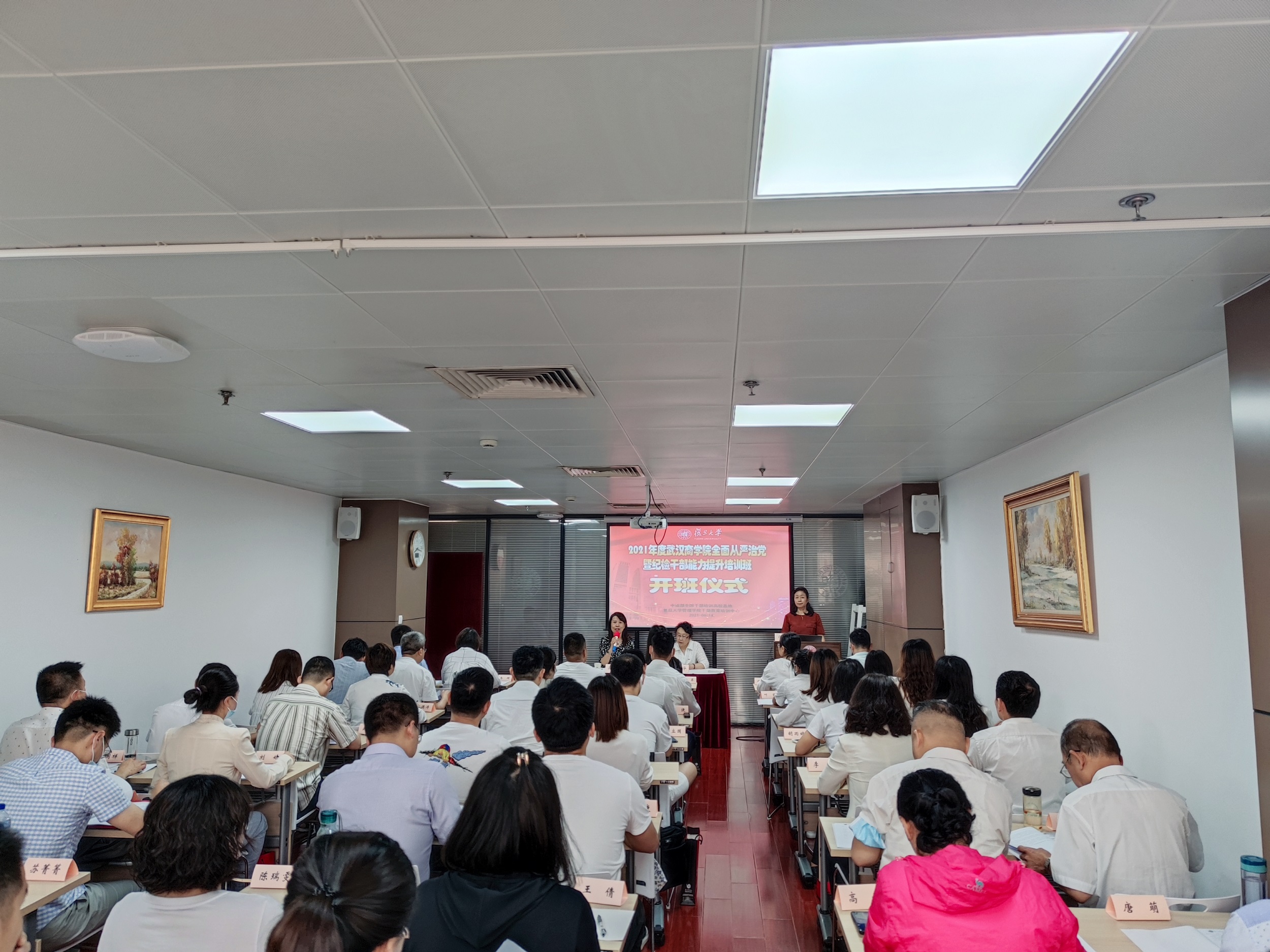 开班仪式上,复旦大学管理学院干部培训中心副主任沈瑜致欢迎辞。沈瑜介绍了复旦大学的办学历史及开展全面从严治党培训的意义。王丽华代表学校讲话,她指出,举办全面从严治党暨纪检干部能力提升培训班,是校纪委2021年重点工作,得到了校党委的关心和大力支持。王丽华表示,此次培训是落实党的十九届四中、五中全会和中央纪委四次全会精神的重要举措,是建设高素质纪检干部队伍实现学校纪检工作高质量发展的实际需要,是推进党史学习教育常态化制度化的具体体现,是扎根大地传承红色基因、面向实践涵养斗争精神的有效途径。她希望,参训学员要学用结合提高履职能力,坚定理想信念,增强“四个意识”、坚定“四个自信,践行“两个维护”。要以深入学习党史为契机,推动学习党史和立德树人有机结合。要以学习为动力,在努力提高理论水平和履职能力上下功夫。