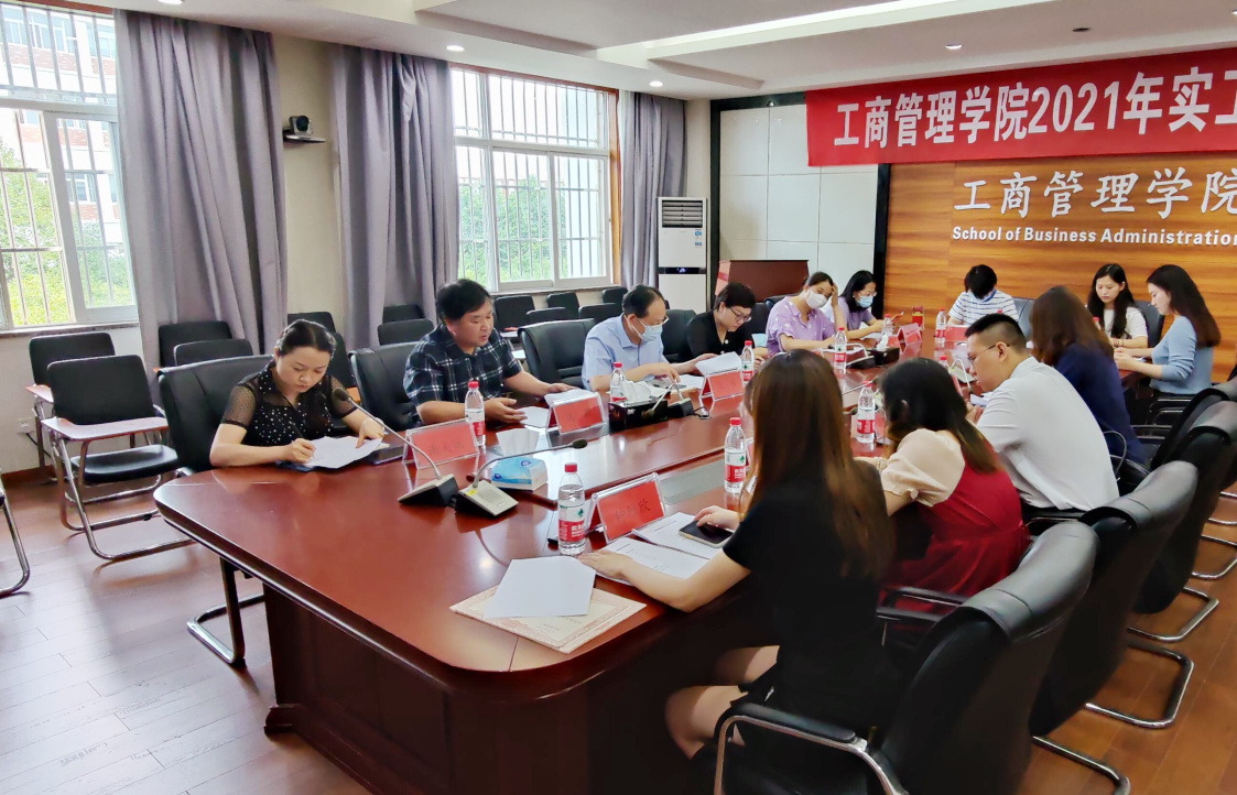 本网讯 6月17日下午,工商管理学院2021年实习工作总结会在301会议室召开。学院领导、各教研室负责人、优秀实习指导老师代表、优秀实习学生代表及武汉贝壳房地产经纪有限公司、湖北鄂宁苏宁物流有限公司及武汉纳杰人才有限公司代表参加会议。