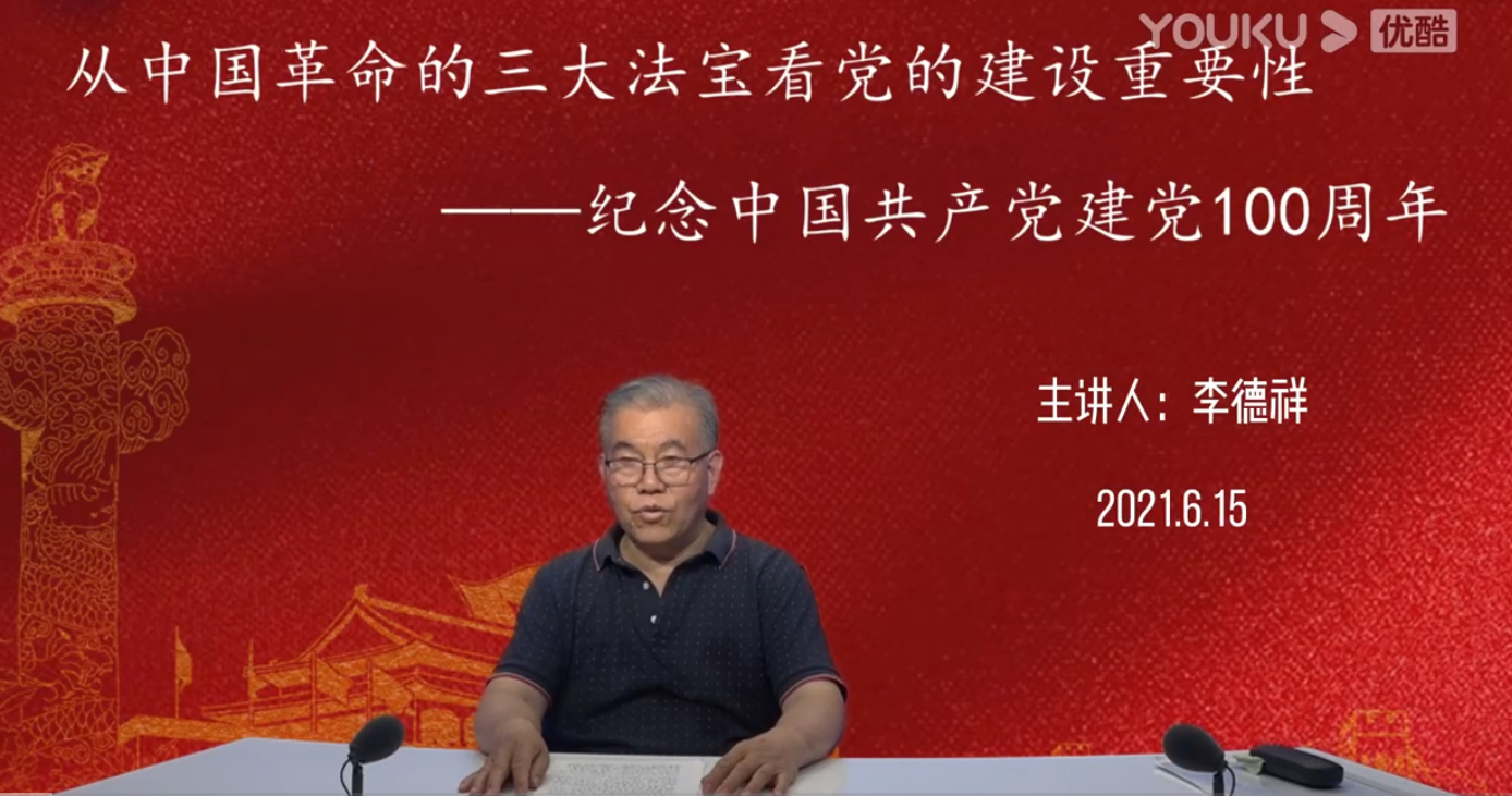 6月15日离退休党总支邀请银发宣讲团李德祥老师来校录制专题讲座视频。6月16日,离退休各党支部将讲座视频转发至各支部微信群组织党员观看学习。李德祥老师用丰富相识的史料、精辟生动的语言,以“从中国革命的三大法宝看党的建设重要性”为主题,讲述了我们党史如何利用党的建设、武装斗争、统一战线这三件武器取得胜利的,指出回顾历史证明了一个真理,既坚持党的领导,革命就会成功、就会胜利,削弱和否定党的领导,革命就会遭受挫折、失败。讲座立意高远、守正创新,既富有理论性,又具有指导性,内容丰富,获得党员们的一致好评。