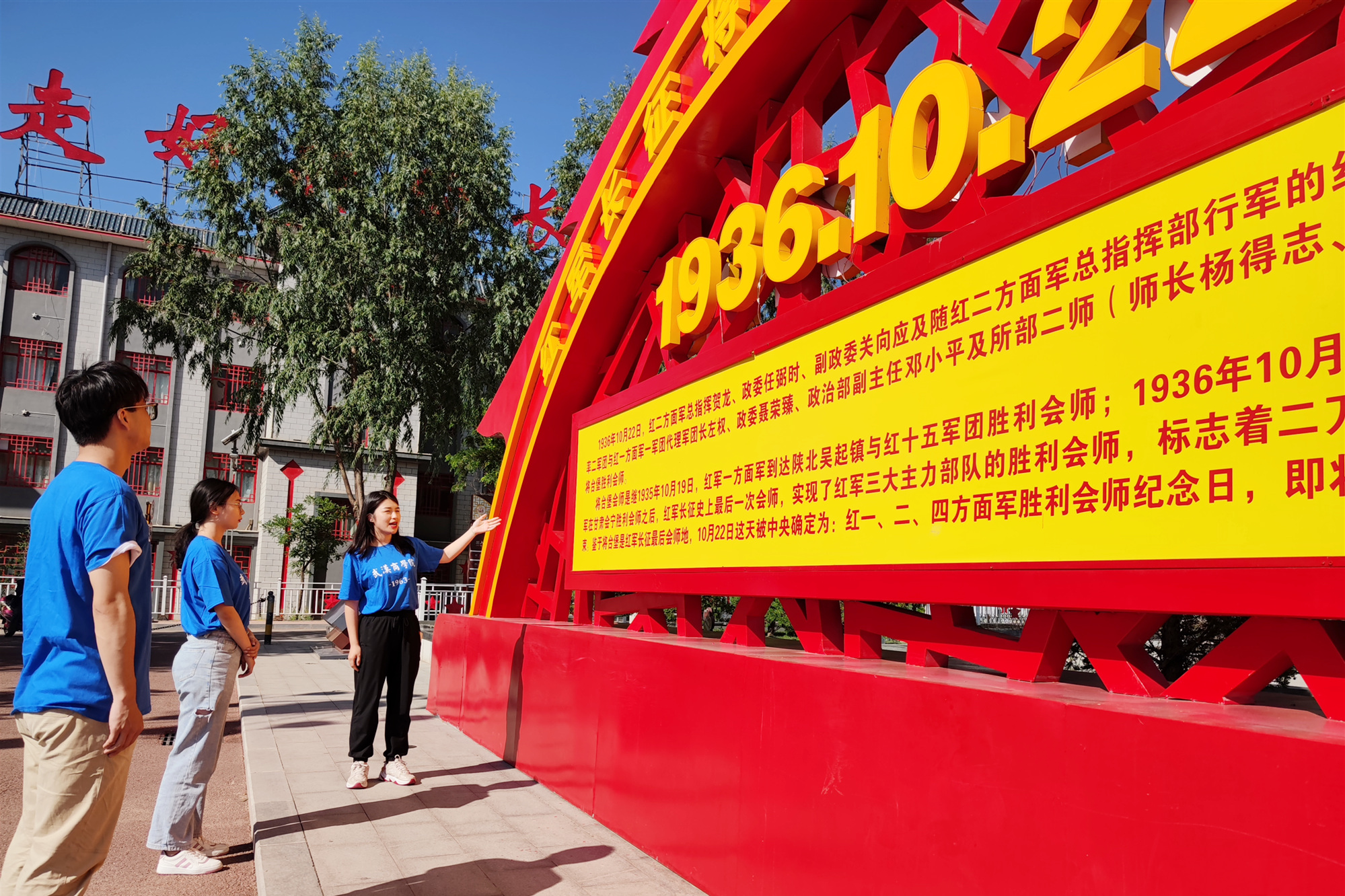 “中国工农红军一、二方面军在将台堡胜利会师,标志着二万五千里长征结束,中国共产党领导的中国革命进入了‘北上抗日驱倭寇、敢教日月换新天’的伟大征程。”将台堡红军长征胜利纪念园里,这段饱含深情的话把实践小分队成员拉回到85年前的那个秋天。1936年10月22日,红二方面军总指挥部、红二军团到达将台堡,同红一方面军第二师胜利会师。