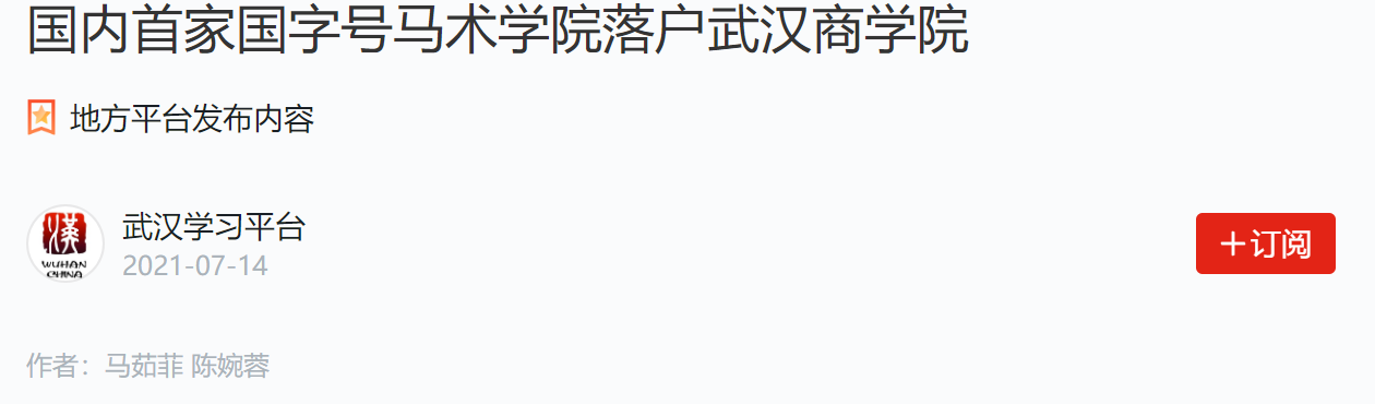 bwin必赢中国官网体育学院·国际马术学院是国内培养马术(赛马)专业人才最早、规模最大的马术高等院校,相继培养1000余名马术人才,走出9位冠军骑师。国家马术学院将以武汉为中心,辐射全国,为中国马术运动及马术行业发展保驾护航,推动我国马术运动健康快速发展。