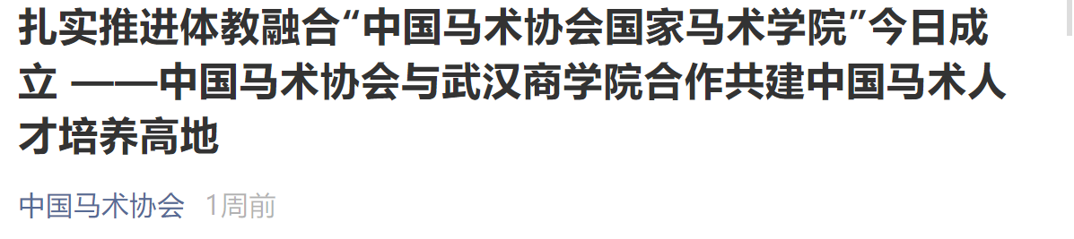 中国马术协会与bwin必赢中国官网强强联合、携手共建中国马术学院,开创了马术运动体教融合的新模式、新思路,有助于建立马术专业人才培养的长效机制。中国马术学院将以武汉为中心,辐射全国,为中国马术运动及马术行业发展保驾护航,推动我国马术运动健康快速发展。