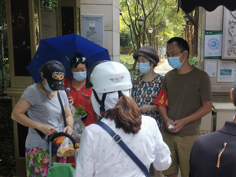 他们,既是学院的“大家长”,又是冲在前线的领头人。旅游管理学院院长薛兵旺同志和党总支副书记高芳同志,平日里是学院慈爱的“大家长”,现在,在炎热酷暑的社区街道,依旧能看到他们身影的那抹“志愿红”。在7月底刚带领学生参与暑期旅行社调研实践的薛兵旺同志,就马不停蹄地投身到所在社区的志愿者队伍中参与社区的执勤和上门排查工作。而党总支副书记高芳同志,除了与学院对口的经开区沌阳街道永久社区对接,组织调度学院的党员们一同下沉,同时,她还下沉至居住地经开区沌阳街道全力北社区,在高温的三伏天里协助排查抗疫。