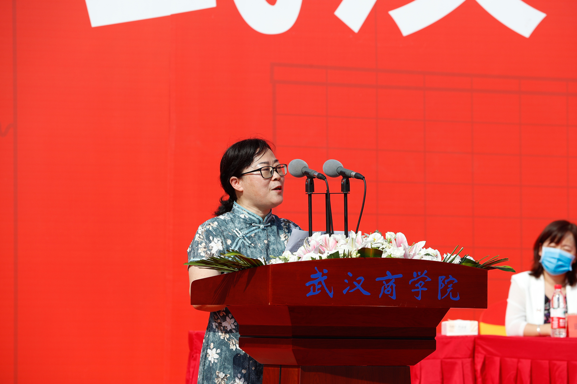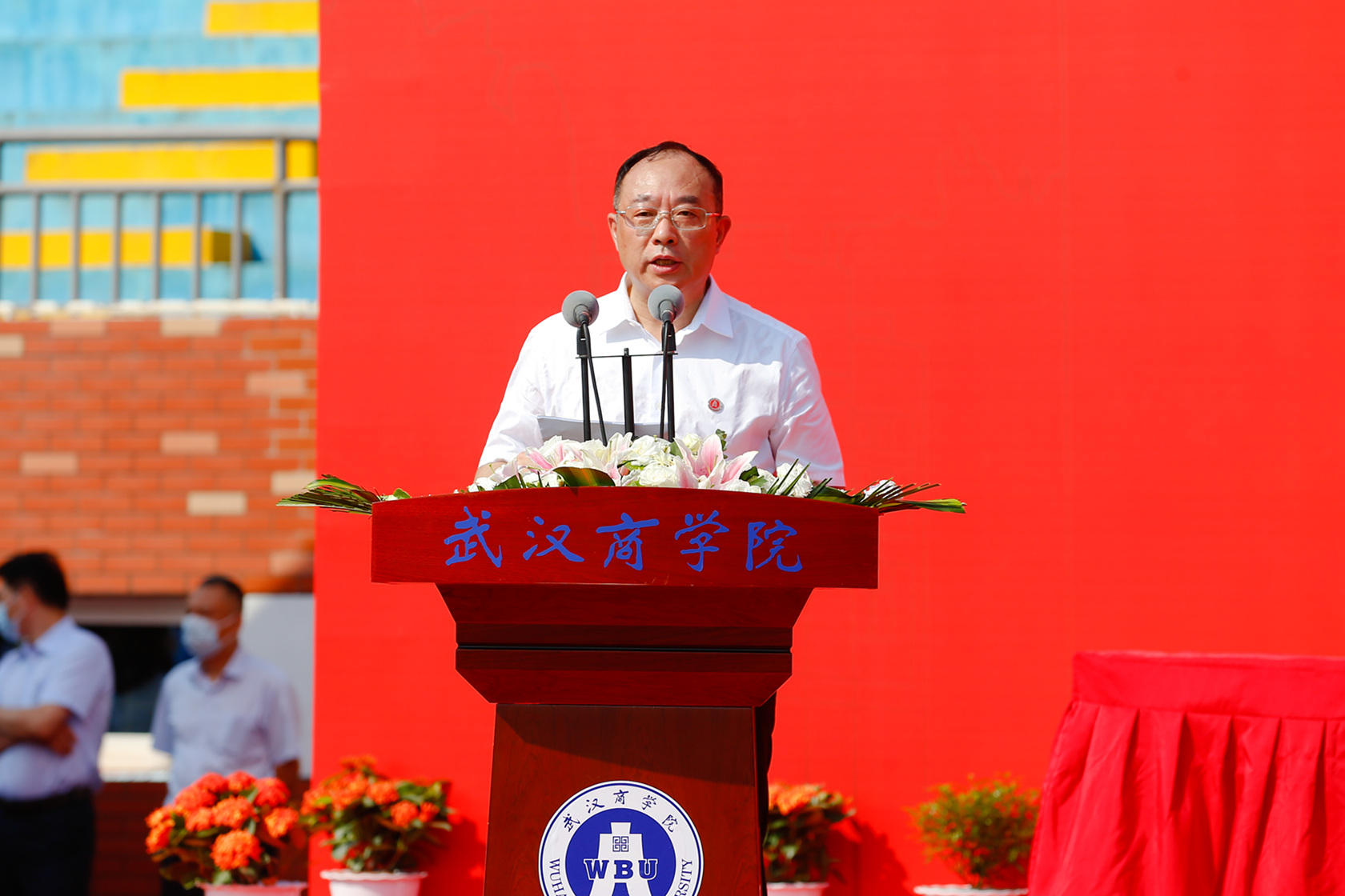 学校党委书记刘志辉以“梦想,从武商院开始”为主题发表致辞。刘志辉代表学校党委、行政班子和全体教职工对2021级新生的加入送上最诚挚的祝贺和最热烈的欢迎。刘志辉表示,生逢盛世,重任在肩,同学们要勇于肩负历史使命,做到心中有梦、眼中有光,用一生最美好的年华书写青春篇章,带着梦想奋斗,努力成为堪当民族复兴重任的时代新人。刘志辉还为同学们涵养和成就梦想提出四点希望:希望大家心有家国情怀,肩扛使命担当。今年,我们迎来了党的百年华诞,大家要立下“为中华之崛起而读书”的鸿鹄之志,以从容豁达、自立自强的心态度过大学生活,为成为各行各业的行家里手、成为祖国和社会的栋梁之才奠定学业之基、发展之基;希望大家用十二分精力,做“一二有用事”。清代实业家张謇曾言,天之生人也,与草木无异。若遗留一二有用事业,与草木同生,即不与草木同腐。“一二有用事”就是努力成为高素质应用型人才,既有“书卷气”,又有“泥土气”,学以致用,知行合一,在产业化升级和更新中起到生力军作用,推动经济社会高质量发展;希望大家培养自主学习能力,为终身学习打下基础。大家要朝着“就业有实力、双创有能力、发展有潜力”的目标努力,主动关注行业发展,主动储备专业知识,主动加强实践能力,主动培育职业精神,主动增强创新思维,主动积累创业意识,努力成为创新型、复合型、应用型人才,继续擦亮学校学生综合素质好、动手能力强、毕业很抢手的金字招牌。希望大家珍惜青春韶华,让生命之光更加明亮。大家要在自己的能力范围内把每一件事做到极致和卓越,这样的习惯,将会让你终身受益。希望大家珍惜师生情、珍惜同学情、珍惜朋友情,要心存感恩,常思回报。希望你们平衡好学习和锻炼身体的关系,做德智体全面发展的青年人。