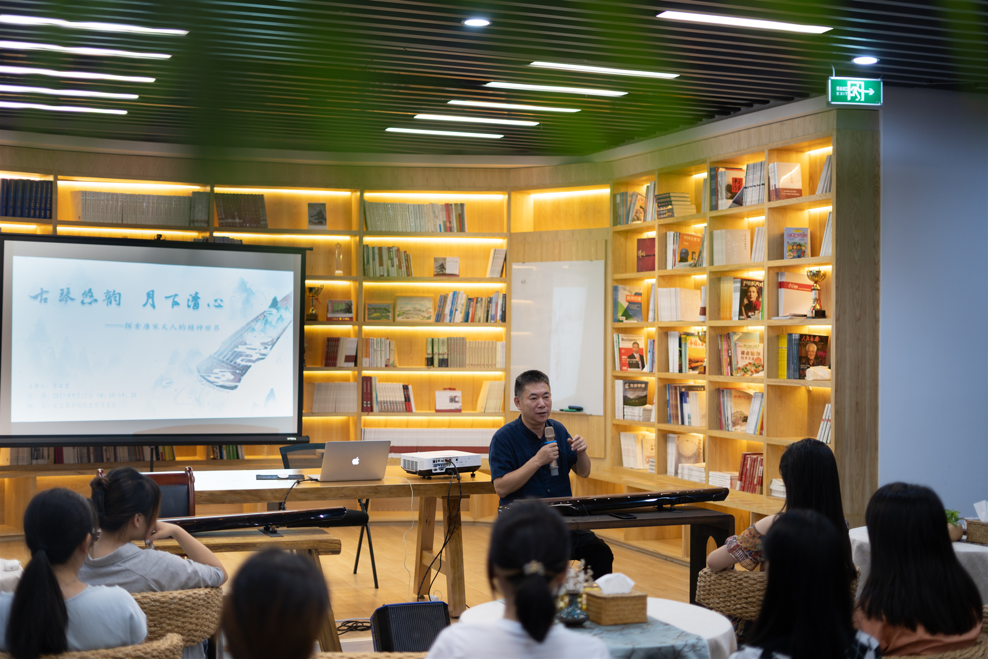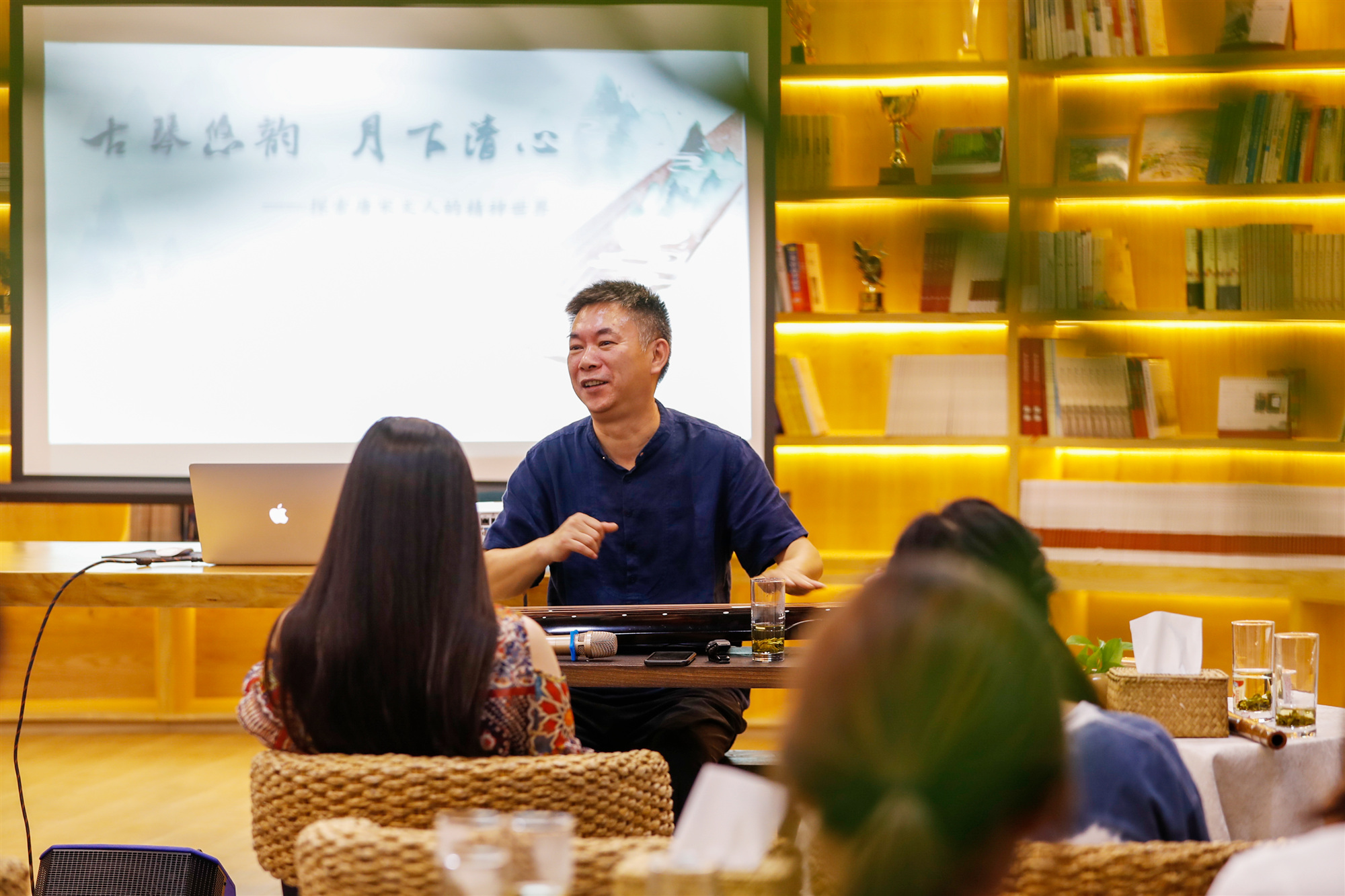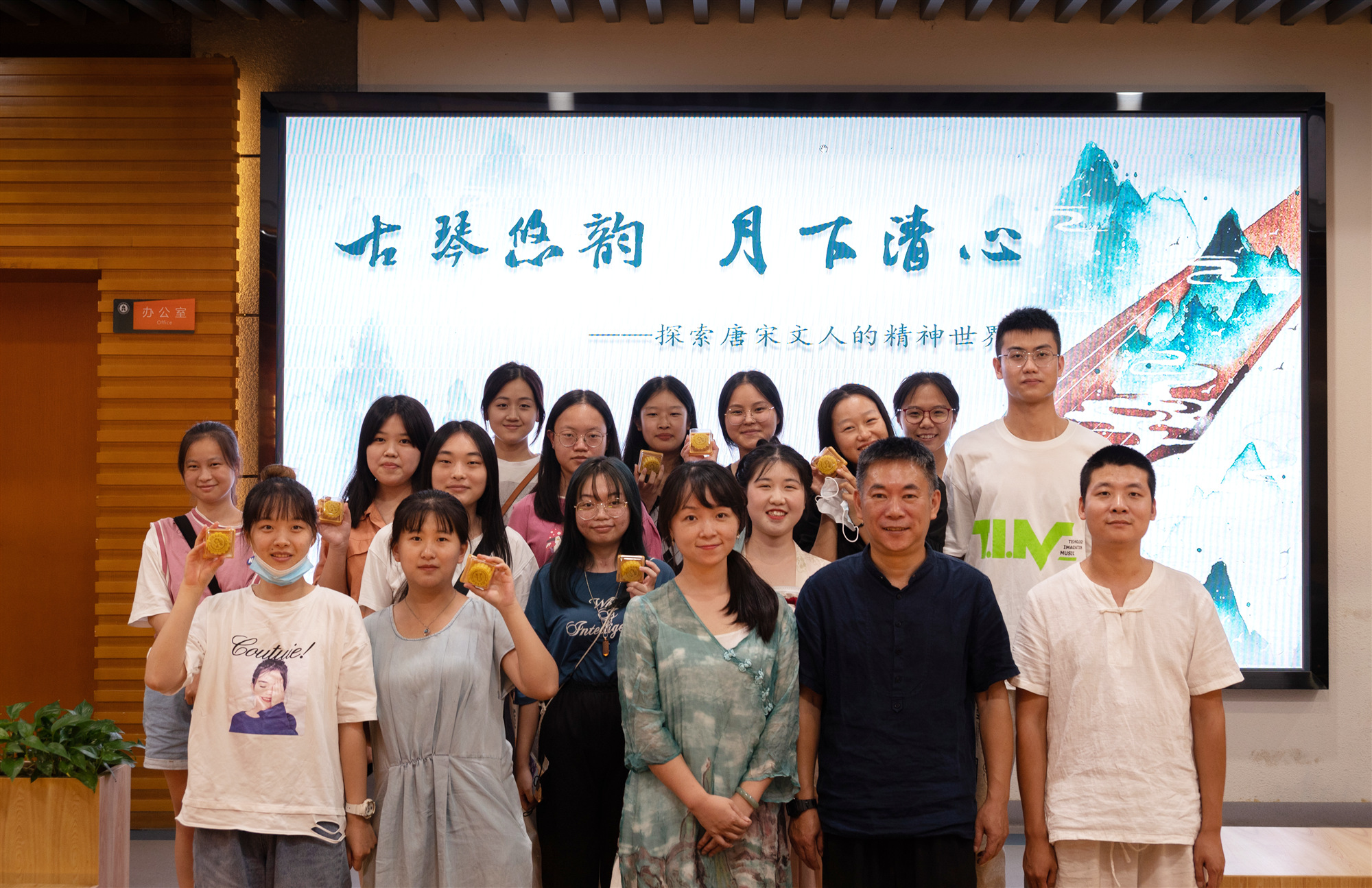 本网讯 闲坐夜明月,幽人弹素琴。9月17日晚,我校新学期首堂国学小课——“古琴悠韵,月下清心,探索唐宋文人的精神世界”在校史馆正式开讲。在武汉大学研究所研究员张祐堃的带领下,三十余名学生听悠悠琴韵、品清香茶茗、吃定制月饼,在袅袅琴音里共度中秋佳节。