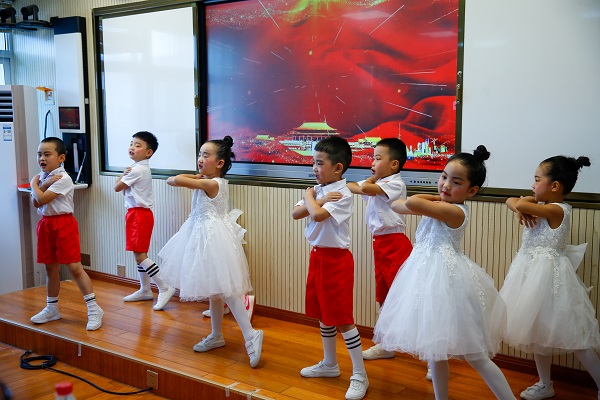 高静表示在今天特殊的日子,希望能通过此次普通话推广活动表达出大家对祖国的爱意。同时结合目前普通话使用情况,高静进一步指出讲好普通话、书写规范字的重要性,希望可以通过大家的努力积极营造更加良好的语言文字环境,努力在实践中培养学生热爱祖国语言文字的情感,提高语言素养。同时活动现场,10位幼儿园小朋友的激情朗诵《读中国》感染了不少教师,纷纷热泪盈眶,我校通识教育学院院长、江大园社区主任、薛峰幼儿园教师联合朗诵《中国话》也进一步激发了大家的爱国热情。
