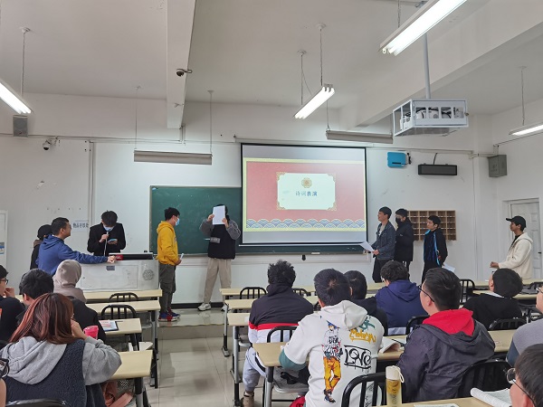 在思政课堂上,如何做到将理论和实践有机结合一直是徐倩倩老师课程改革思考的重点。谈及如何落实思政实践课改革,徐倩倩介绍到,马克思主义学院的老师经常进行集体备课,融合多种形式的授课中,积极创新教学模式,探索特色教学。例如在设计的诗词鉴赏会的特色环节里,思政教师们会开放情境,通过播放毛泽东相关影片,分析图片及文集案例,情景剧等来引导同学们合作探究。“这些形式充分了调动学生思考积极性,碰出了新的思想火花,效果显著。”徐倩倩结合目前的课程方案改革效果谈到。