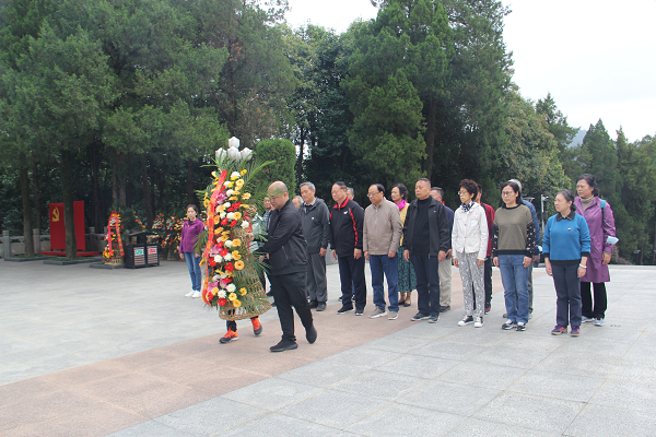 金寨革命烈士纪念塔上,刘伯承元帅亲笔手书的“燎原星火”映入眼帘,离退休工作人员手托花篮,迈着缓慢的步伐走到革命烈士纪念塔前,向革命烈士纪念碑敬献花篮,向逝去的先烈默哀致敬。离退休党总支宣传委员汪振国同志带领大家伫立纪念塔前,重温入党誓词,老党员们铿锵有力的声音表达了对党的事业的无限忠诚和对烈士们的崇高敬意。