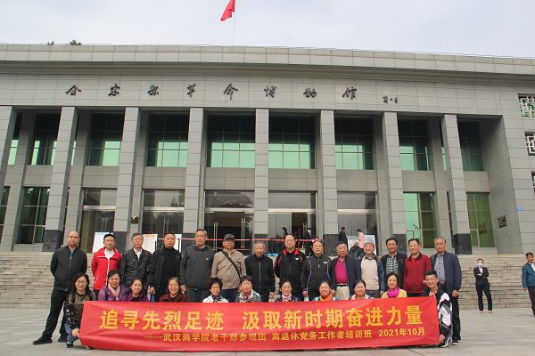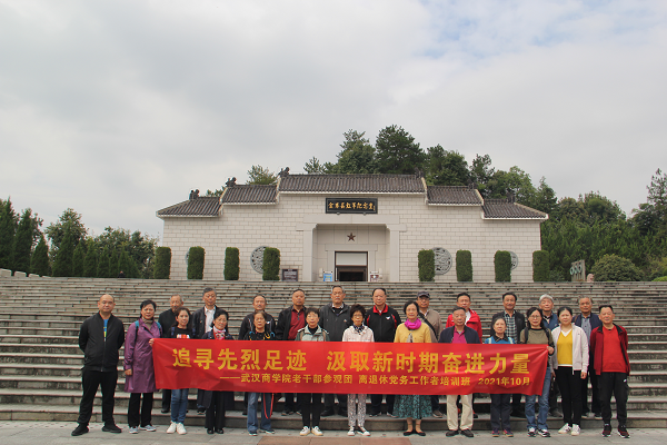 本网讯 为深入开展党史学习教育,搭建老干部赓续红色基因平台,引导老干部传承红色基因,传递正能量。按照离退休工作处2021年工作安排和武汉市委老干局《“老干部红色教育十佳地标”寻访推介活动方案》要求,10月11日—13日,离退休工作处组织学校离退休老干部考察团、离退休党务工作者培训班赴安徽省六安市金寨县开展了“追寻先烈足迹 汲取新时期奋进力量”寻访推介老干部红色教育地标活动暨2021年离退休党支部培训班活动。