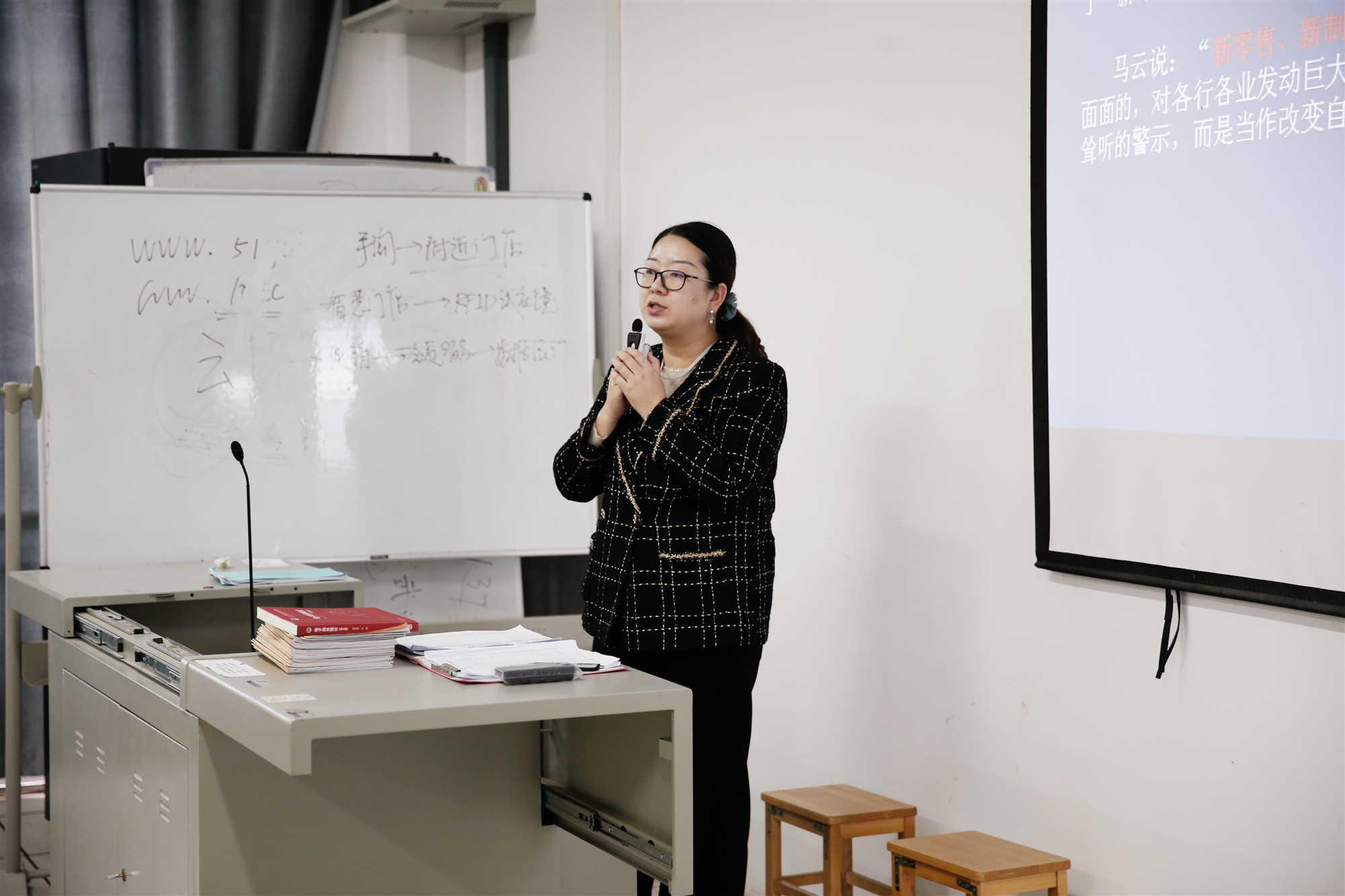 “这个移动话筒是我必不可少的教学设备。”王丹说,“即使是这么大的教室,我也不用担心是否会由于声音小而影响到其他学生的听课质量。”相比于传统固定的教学麦克风,新型麦克风兼具扩音与移动的功能,为课堂上师生之间的交流提供更大的空间。
