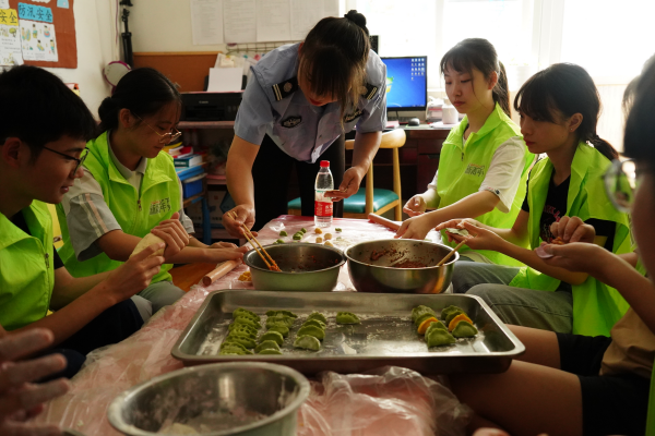 成员们去到了当地的幼儿园,与食堂开展合作,发挥专业优势,结合当地市场情况,与幼儿园老师商讨后共同制定出一份适合当地幼儿园的营养膳食午餐食谱。活动当天正值中秋佳节,了解到很多儿童不爱吃蔬菜,为了改善膳食纤维,提高成长所必须的维生素,成员们将食品文化与传统节日相结合,对面粉加工工艺进行创新,采用蔬菜汁对面粉染色,带领着居民和小朋友一同动手制作,捏制不同样式的面点食品,面粉经过搅拌、发酵、捏形、蒸制等工序步骤,变成了一个个五颜六色“玉兔”为外形的甜糯小馒头,受到了小朋友的青睐,“本次活动通过寓教于乐的方式对当地幼儿园小朋友的动手能力进行锻炼,提高小朋友们的动手能力,也希望通过这种方式增强对营养食品的喜爱度,同时切合了中秋佳节的氛围。”项目成员甘雨馨说道。