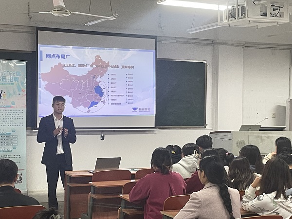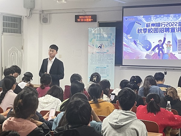 本网讯 10月25日晚6点,杭州银行衢州分行在南一306教室为我校经济学院学子开展宣讲会,助力学生进一步清晰职业规划和就业方向。