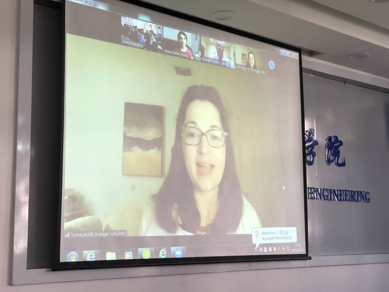 本网讯 10月23日北京时间11:30(美国亚利桑那州时间20:30),我校2021年美国亚利桑那大学人工智能游学项目结课仪式在信息工程学院401会议室举行。 美国亚利桑那大学CESL Dr. Robert Côté院长与Granger. Sumayya KR副院长以及两位老师Ms.Alma和Mr.Ryan同步视频连线的方式参与了本次结课仪式。