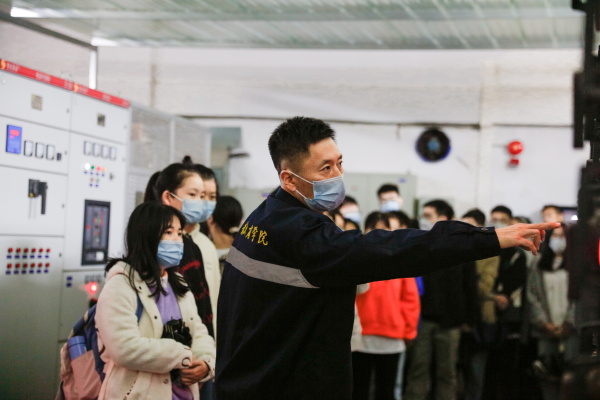同学们跟随领队老师来到专用配电室,“同学们要当心,站在远离黄线的位置。”邱庆龄贴心地提醒说。配电室的现场排列着小区各户的专用配电柜,从中可以看到各住户的用电情况。第一次来到专用配电室见到现场的配电装置,同学们表现得十分积极与好奇。“小区配电中心采取分区域管理供电系统,其中放置了低压配电柜,整个小区的各种用电设备、住户用电等的电源都从这些控制柜里引出。”邱庆龄讲解道。在配电室的另一边,学生徐佳颖现场向老师询问电路检修问题,邱庆龄再次结合实际情况进行解释:“控电中心分为智能型与非智能型,智能型中心会有自动检测装置,出现故障时发出警报,从而找到故障处。非智能型可以进行线路排查,通过设备录像等方式寻找故障处。”徐佳颖表示,相比教室里传统的专业知识授课模式,全新的情景式教学让自己的兴趣更高、对知识的认识也更深刻。“我喜欢这样互动式的教学,希望以后能多开展一些这样的课程活动。”另一位同学王美钰期待地说。