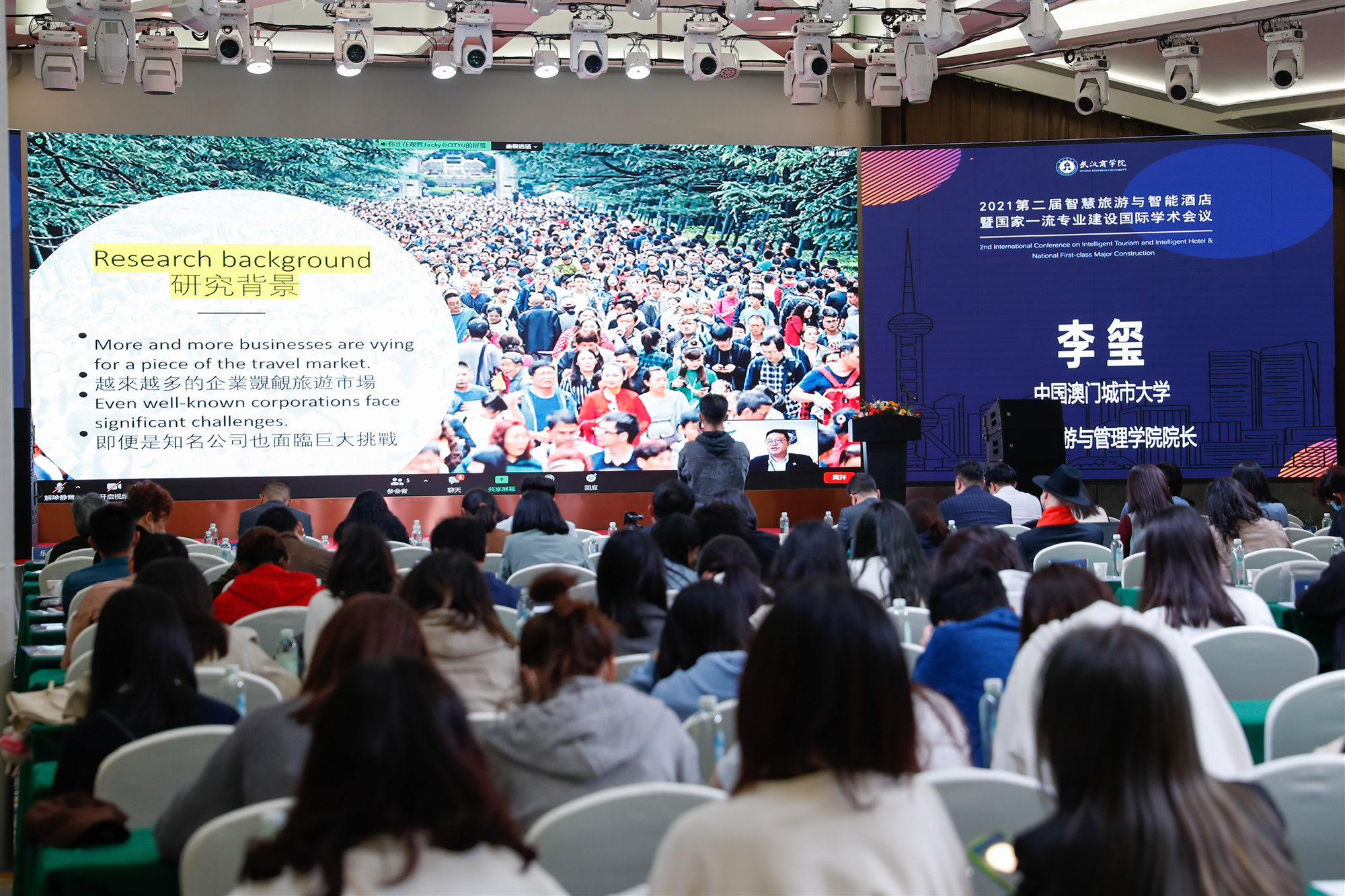 本网讯 随着旅游信息化程度的加深和智慧城市的不断建设,智慧旅游和智能酒店逐渐成为旅游研究中的热点问题。10月28日,由我校主办的2021年智慧旅游与智能酒店暨国家一流专业建设国际学术会议在汉召开,邀请来自中国、罗马尼亚、美国等国的12位专家学者以“大旅游”的视角,发表智慧旅游与智能酒店最新研究成果,赋能后疫情时代旅游业高质量发展。