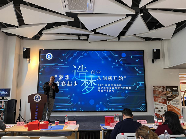 本次活动将58支大学生创业团队分为社会服务、扶贫助农、教育培训、信息技术、大健康、环保科技、文化创意、创新餐饮8个项目组别依次进行路演展示。评委根据项目的市场前景、技术可行性、投资风险、效益、所需资金等进行评价打分。湖北工业大学招生就业指导处处长夏星对我校大学生创业项目表示了肯定,对我校创业大学生的路演表现表示了赞许。夏星表示,武商院学子抓住时代背景,展现青年学子责任感使命感,将所学知识转化为实践能力,充分展现了当代大学生“知识创业、科技创新”的风采。