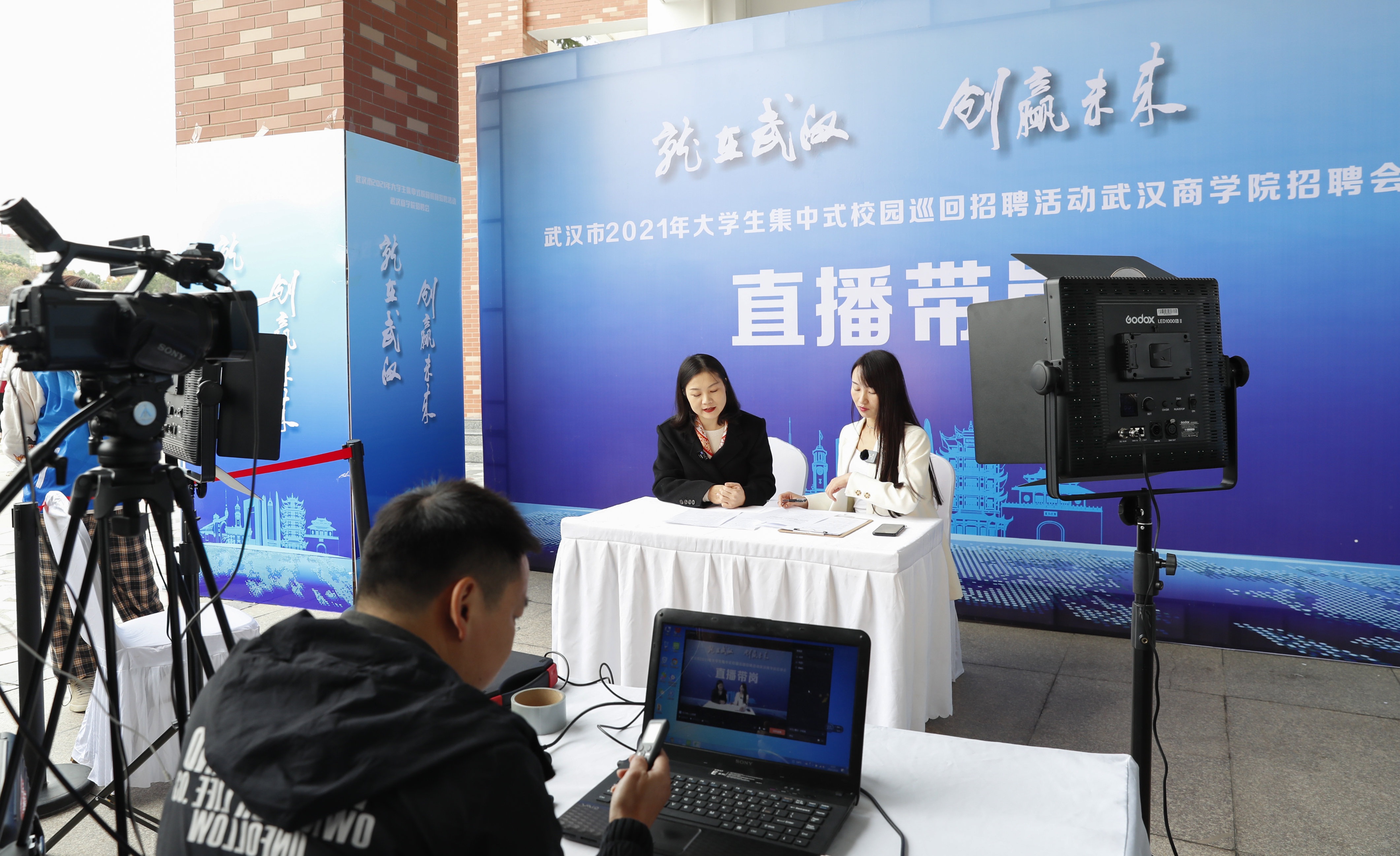 武汉杜贝特人力资源有限公司是此次招聘会的承办单位之一,将直播间搬到了招聘现场,通过直播的方式介绍岗位信息、薪资待遇以及投递方式。负责直播工作的李先生告诉记者,直播带岗是他们招聘工作的一次大胆尝试,不仅能让未到现场的毕业生了解招聘情况,而且直播结束后相关录像、数据都可保存,供学生们随时观看,避免大家因时间限制错失心仪岗位。