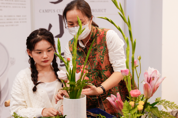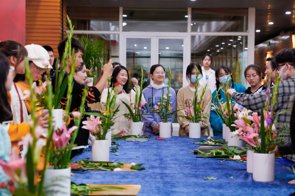“汉楚插花艺术是中华传统艺术文化,是中华民族宝贵的文化遗产,我热切期盼大家这一代人能够将其继续传承下去,将汉楚插花艺术文化进行创新性发展。”在活动最后,苏艳玲与同学们进行了积极的互动和交流。她以自己35年的花艺从事经历为例,寄语新一代的年轻人要弘扬正气、传播正能量,做传统文化的复兴者和传承者,向世界展示中国人文艺术之美。