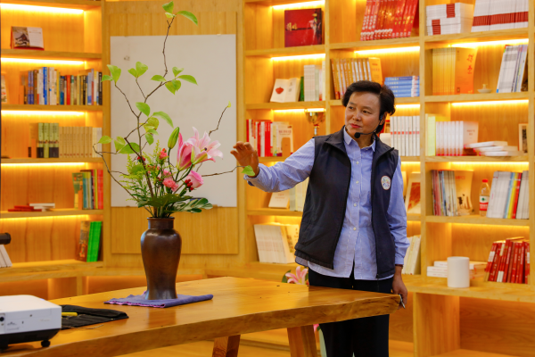 本网讯 汇文人墨客之智,展汉楚艺术雄浑。11月4日晚,国学小课“非遗汉派插花技法与民族花艺美学体系”在校史馆开课,汉楚插花创始人,汉楚传统插花艺术传承人苏艳玲携陈芳明、陶希二位老师,在千年汉楚插花技艺中和我校30余名学子一同领略传统技艺的艺术丰碑。