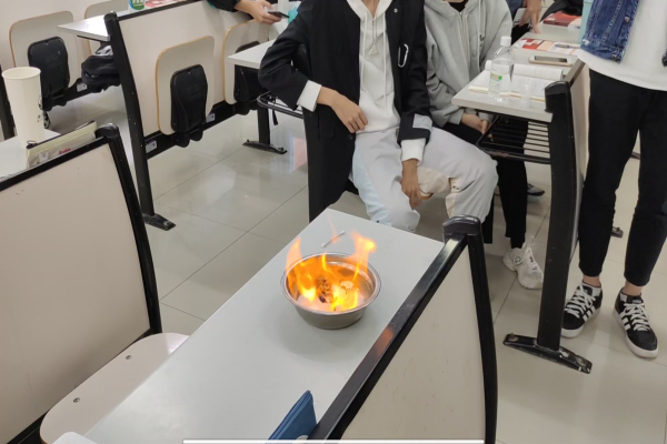 本网讯 “哇!只在视频上看过的‘火蛇’实验居然亲手成功的做出来了!”化学课上传来了这样的惊叹。来自食品科技学院烹饪与营养教育专业的同学正在课堂上做简易版“火蛇”小实验:只将小苏打与糖混合,沙土打底,加入酒精点燃,就会有“火蛇”长出来。在《基础化学》的课上,授课教师肖迎每周都会开展一次“化学小课堂”,让学生们自己进行化学科普或者实验,以更好的对化学课有更深入的理解。