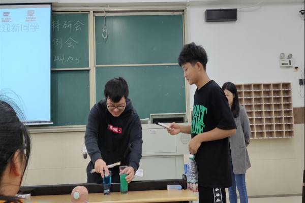 肖迎老师表示,作为自然科学的一种,如果光讲化学理论知识相对就会很枯燥。做化学小实验是希望大家参与到这个课程里面来,用生活中可以找到的东西完成实验,给同学们自己带来锻炼的同时也可以给课堂增添一点色彩。同学们去寻找实验、做实验的过程中,也用到了课堂上的知识,无形中也是对课堂内容的巩固。