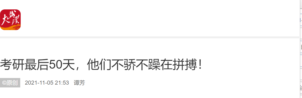 长江日报大武汉客户端11月5日讯 今天是11月5日,距离全国硕士研究生招生考试初试还剩50天。在武汉各高校里,一群朝气蓬勃的青年正在奋力逐梦。