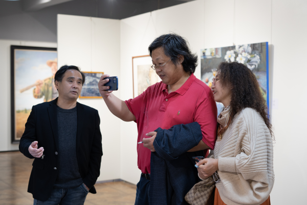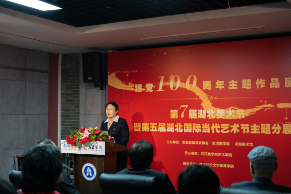湖北省美术家协会秘书长刘春冰在开幕式上谈道,艺术可以与多学科多专业交叉并进,打破艺术和学科之间的壁垒。希望此次美术展能将艺术与党史学习结合,达到双赢的效果。此次展览也是第七届湖北美术节暨第五届湖北国际当代艺术节主题分展。参展作品主要来自湖北省内56位知名艺术家及我校艺术专业师生之手,形式多样,题材广泛,书文交辉,画影相映,一笔一墨,倾尽匠心。