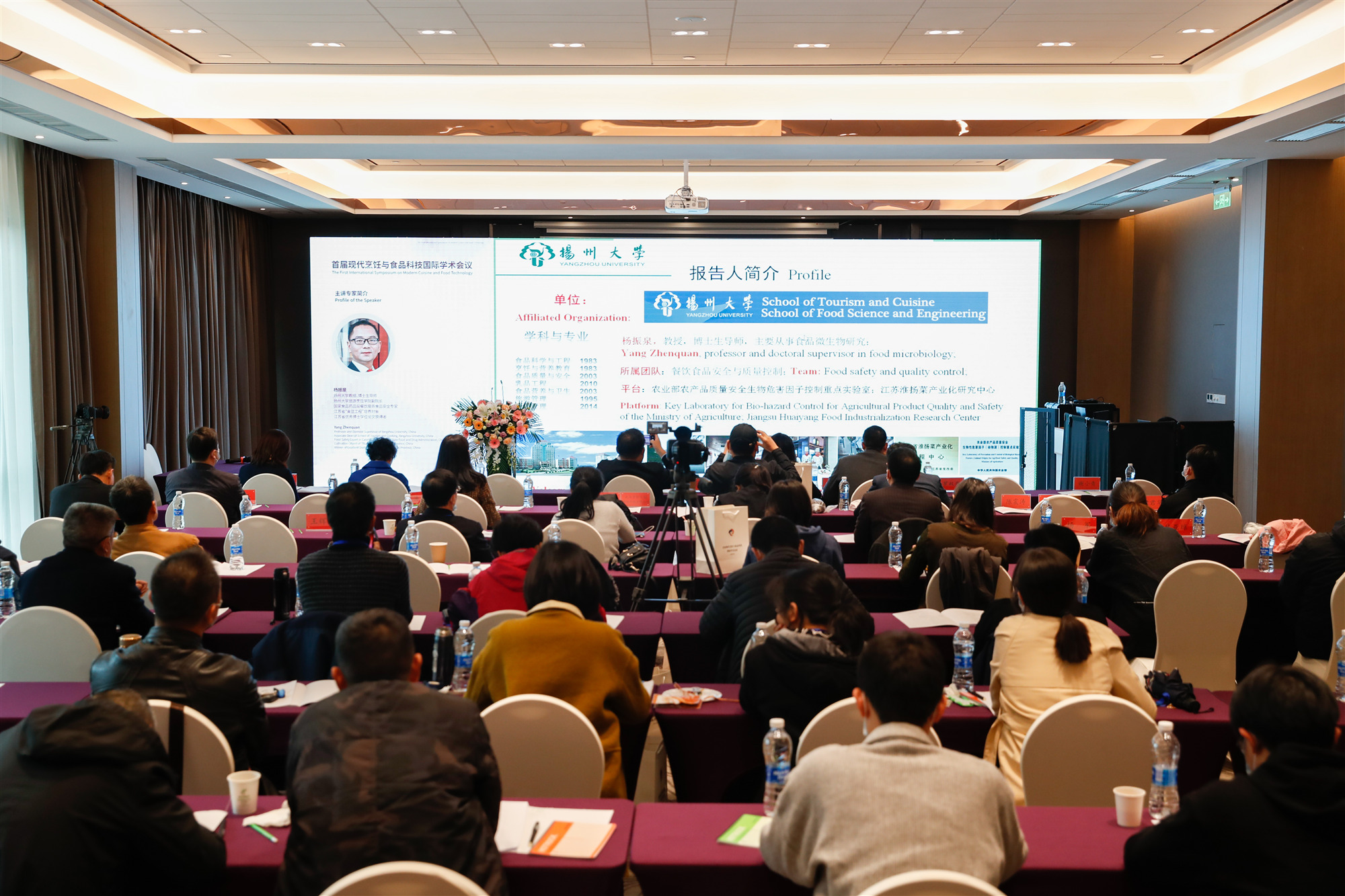 会议现场,包括华中农业大学、武汉轻工大学、牛津大学、香港浸会大学、沙特阿卜杜拉阿齐兹国王大学、沙特塔布克大学等高校的学者依次作报告。来自华中农业大学的李斌教授以“人造肉”为主题,结合自身的科研介绍了人造肉研究与制造的现状与发展趋势,解析了人造肉加工的关键技术,剖析了生产、使用中存在的问题及未来发展方向。李斌教授表示,具有健康环保等优势的植物蛋白肉早已步入人类生活,大力发展人造肉产业是大势所向。李斌教授强调,人造肉的出现,关键在于人类如何利用,对“人造肉”合理的开发和使用,符合社会可持续理念。扬州大学的杨振泉教授就“中餐规模化加工中重要生物有害物绿色防控技术进展”发表自己的看法。杨振泉教授指出,由于中餐发展趋势逐渐趋于大规模化,来自感染食源性疾病的风险也会随之增加。因此,大力发展生物有害防控技术是重中之重。而生物膜的定植是当下餐饮行业亟待解决的难题。杨振泉教授希望,通过对菌落的实验来攻克难题,并已在此实验上取得突破,并邀请与会学者积极探讨、合作。