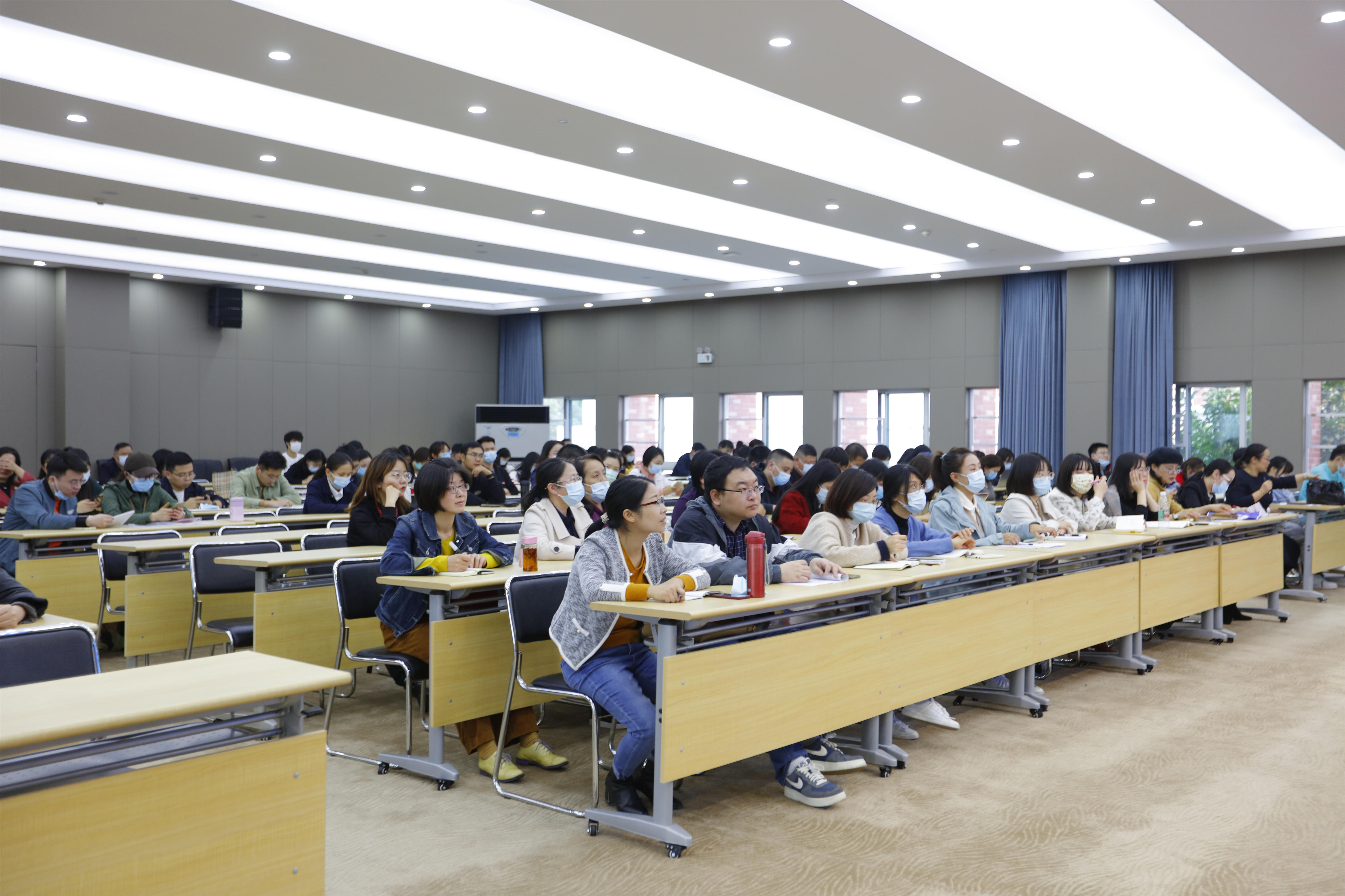 陈少昌结合自身对课堂教学改革方式的研究与实践经历,围绕前沿背景、实践过程、主要方法、应用成效及主要创新等多个方面,并结合我校校训就高等教育发展形势、课堂教学改革、如何提高课堂教学质量与师生互动等进行了详细阐述。在讲述多数教师采用幕课教学这一模式中,陈少昌肯定前沿科学技术给教育带来便利的同时,也指出了教师拍幕课存在的缺陷,反对全程慕课教学。陈少昌表示,幕课需要教师的牵引才能让学生更容易接受。一门好课,内容有清晰的知识体系和科学的知识边界,用讲授逻辑将课本中的知识逻辑转化为学生能够接受的认知逻辑。陈少昌十分重视课堂的创新与活跃,对于教学改革,陈少昌表示,“以学生为中心”的教学改革要从改变课堂做起,要让“老师教,学生学”转变为“老师,教学生学”。他始终呼吁“把每一名学生,当做一座宝藏”。语言生动、条理清晰、重点突出,博得了在场教师的掌声。