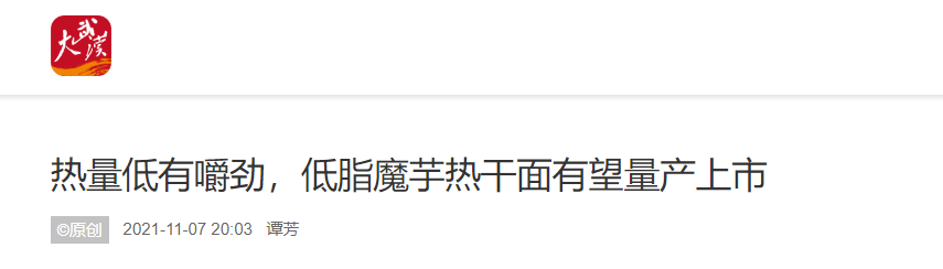 据该学院院长杨军介绍,低脂魔芋热干面制作关键技术及应用是他们在对魔芋进行基础性研究时收获的“意外之喜”。该校成立武汉市传统食品研发中心时,制造魔芋热干面的想法就曾被提出,2018年正式得以实践。今天,学校与武汉粗茶淡饭餐饮有限责任公司正式签约,魔芋热干面有望量产上市。