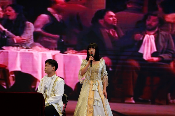 在文艺表演中,来自大学生艺术团的演员们为大家带来了一场别具风情的歌剧表演,让在场观众享受了一场视觉和听觉的双重盛宴。2019级商务英语三班的同学们也通过自创短片的形式为大家开了一场特别的“读书分享会”,引起了观众们的共鸣。