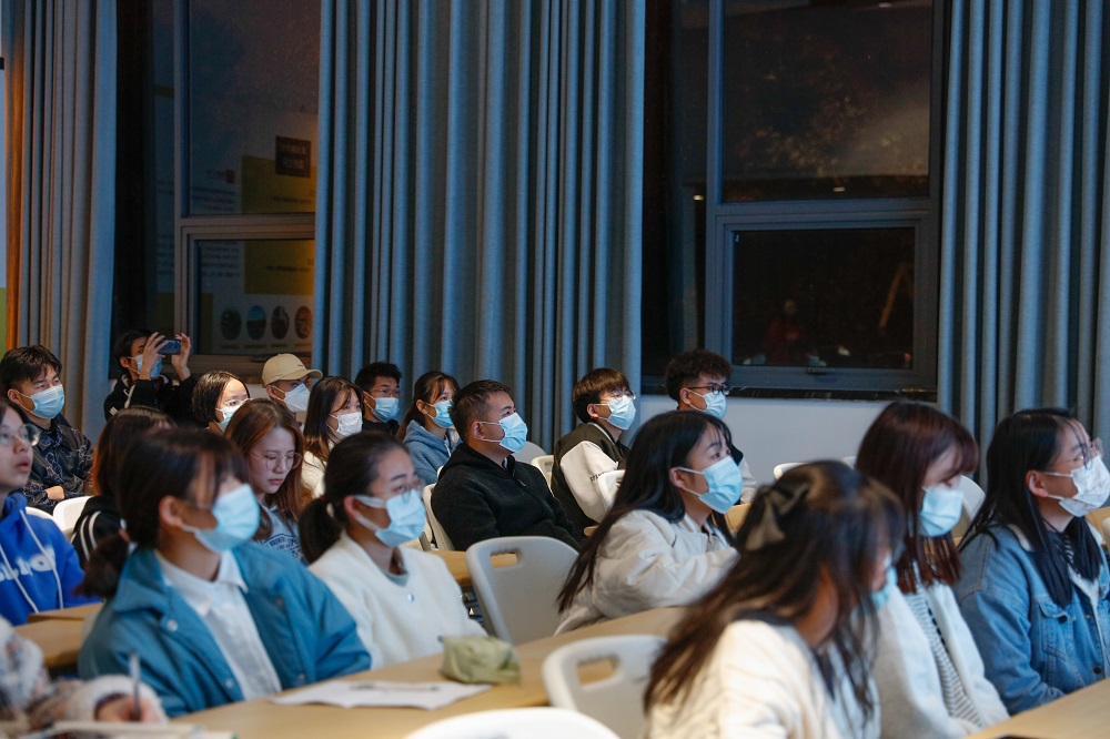 讲座最后,主讲人从“端正态度”“高效复习”“列好计划”三个方面重点阐述了备考英语的重要性,推荐了相应的学习方法,并鼓励大家保持良好心态。在十分钟的问答环节,同学们积极提出自己在专业学习方面的困惑,现场互动气氛热烈。