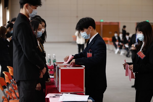 经分团会议讨论,大会采取不记名投票、差额选举的方式产生了我校第四届学生会主席团、学生代表大会常务委员会。丁子灵等15位同学当选学生代表大会常务委员会成员;朱芷萱、汪紫阳、吴豪、张璐娜、徐寒池任学生会主席团成员。