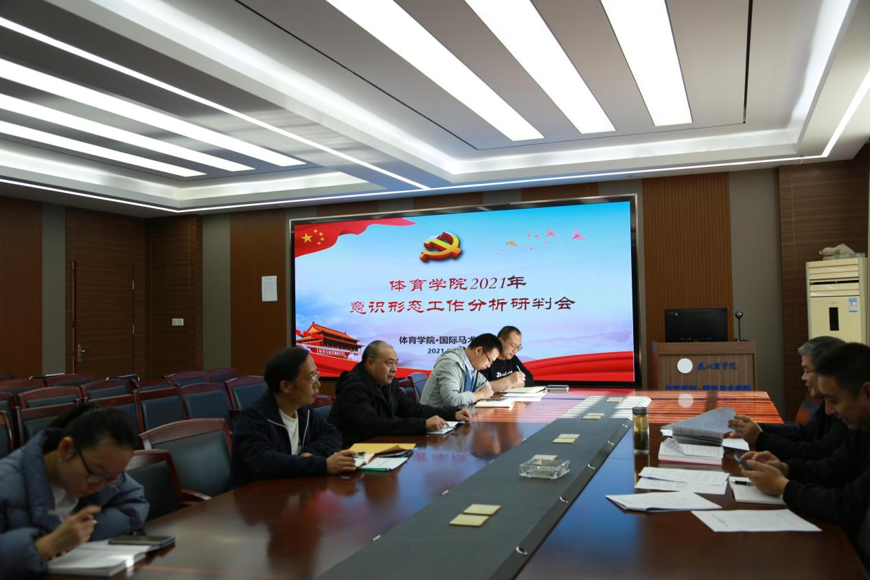 会议学习了习近平总书记关于意识形态工作的重要论述,听取了《体育学院·国际马术学院贯彻落实意识形态工作责任制实施细则》、《体育学院·国际马术学院宣传阵地管理办法》的意见;各部门、教研室、党支部汇报了分管领域意识形态工作的情况,分析研判了学院意识形态工作的形势,并对下一步加强意识形态工作进行了部署。