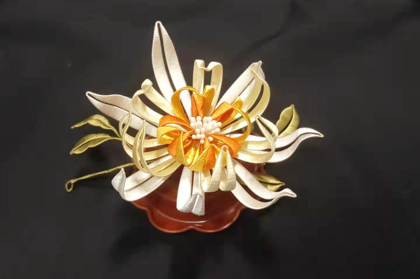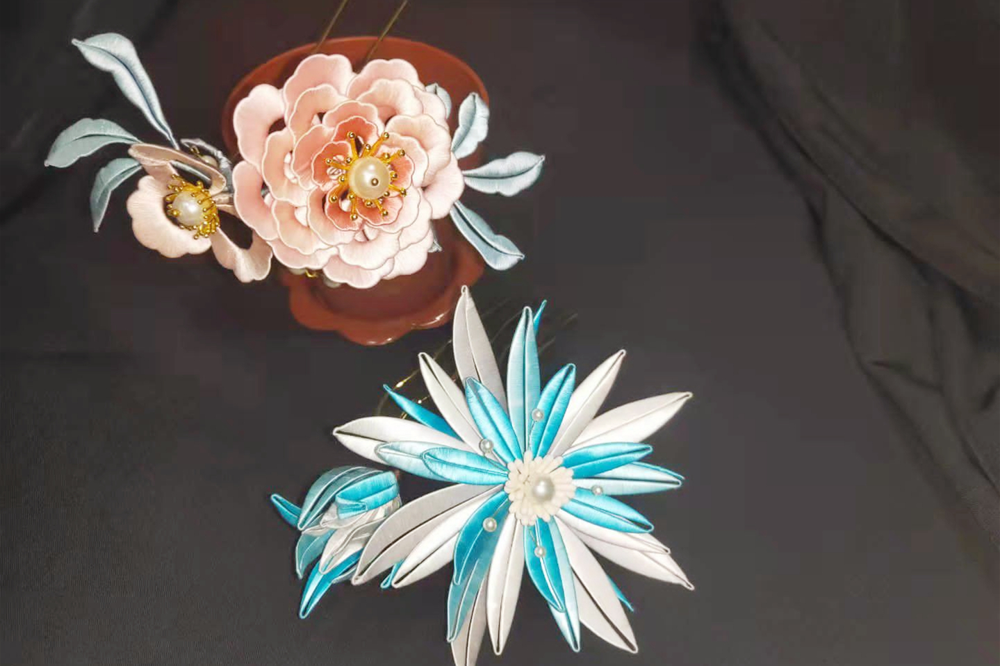 谈及缠花工艺,杨敏敏表示自己制作的缠花属于湖北省非物质文化遗产英山缠花,具有小巧精活等特点,汲取多种艺术精华,是充满乡土气息的民俗工艺之花,也有立体绣花线艺雕塑立体工笔画之称。由于从小就产生了对精美古典艺术作品的喜爱,特别是在高一了解上汉服以后,偶然一次看到了汉服发饰上搭配了缠花配饰的杨敏敏,顿时被这种精致的“小玩意”给深深吸引住了。