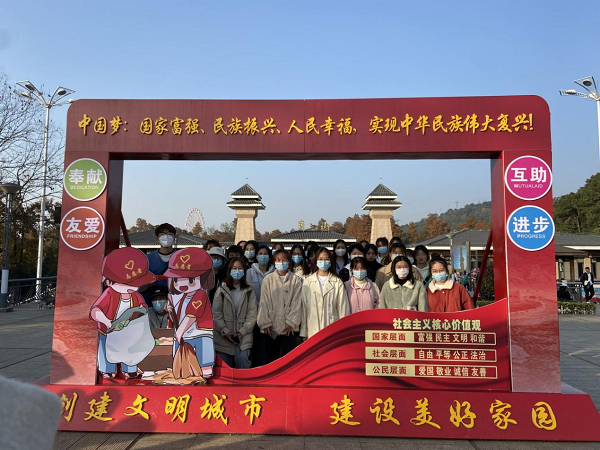到达目的地后,两位小导游非常细心的为同学们强调了注意事项,还给同学们一一介绍了东湖磨山景区的各个构成部分。在有序组织下,全体同学进一步开展了团建活动,同学们积极参与、竭尽全力,充分锻炼了大家的团队意识。在建立了合作意识后,同学们又认真地完成了旅游接待业的相关情况调研活动。