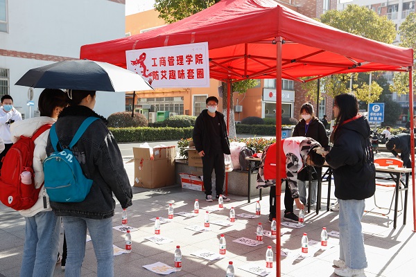“我国首次发现艾滋病感染者是经何种途径感染”“下列哪项检查能够最终确定病人感染了艾滋病病毒?”在国际教育学院和机电工程学院的摊位上,“防艾知识竞赛”正在火热开展,20级物业管理专业杨睿答题速度快且准确,“通过这个活动我接触到了很多关于防艾的知识,希望以后可以帮助到更多的人。”工商管理学院的防艾趣味套圈与体育学院·国际马术学院的“驱艾拥爱”活动成为最受欢迎摊位。