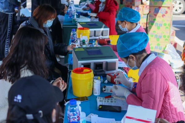 上午10点,武汉市血液中心献血白色大巴前,等候献血的学生早早的就排起了长龙,工作人员认真仔细询问献血者的身体状况,同时向检测合格的同学讲解献血的有关注意事项。在我校青协志愿者的指引下,依次完成填扫码登记、检测、采血和发证过程。活动过程中,人数最多时达近两百人,每位学生都自觉戴好口罩,现场秩序井井有条。