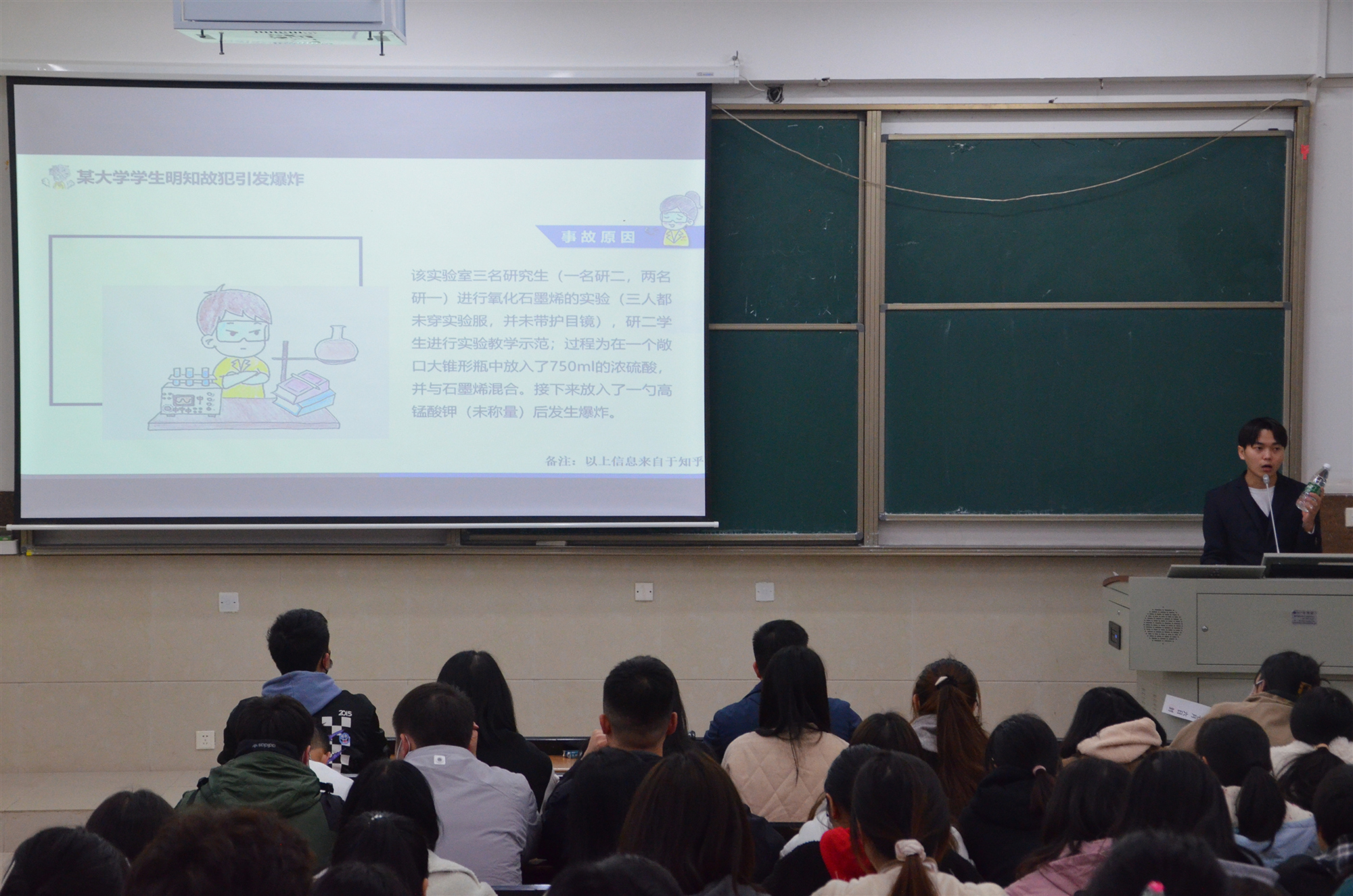 此次危化品泄露知识培训和实战演练,为师生们带来了一个与众不同的课堂,通过亲身模拟和体验,使全体师生对实验室安全隐患有了更加深刻的认识,从而对实验室安全使用更加重视。今后我校将进一步加强实验室安全教育,将该教育渗透到日常教学中,提高师生应对突发事件的能力,增强自我保护意,为师生创造安全的工作学习环境。