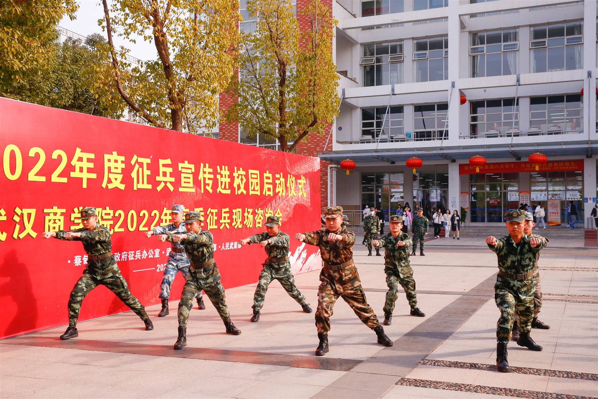 12月7日,2022年度蔡甸区征兵宣传进校园活动暨“区级示范高校征兵工作站”授牌仪式在我校行政楼多功能会议厅举行,我校成为全市首个“区级示范高校征兵工作站”。市委常委、武汉警备区司令员袁野大校,蔡甸区委副书记、代理区长余从斌,蔡甸区人民武装部部长吕春峰,蔡甸区人武部政治委员张志国上校、蔡甸区人武部副部长兰明明中校参会。我校党委书记刘志辉、副校长张石以及部分高校领导代表等出席会议。