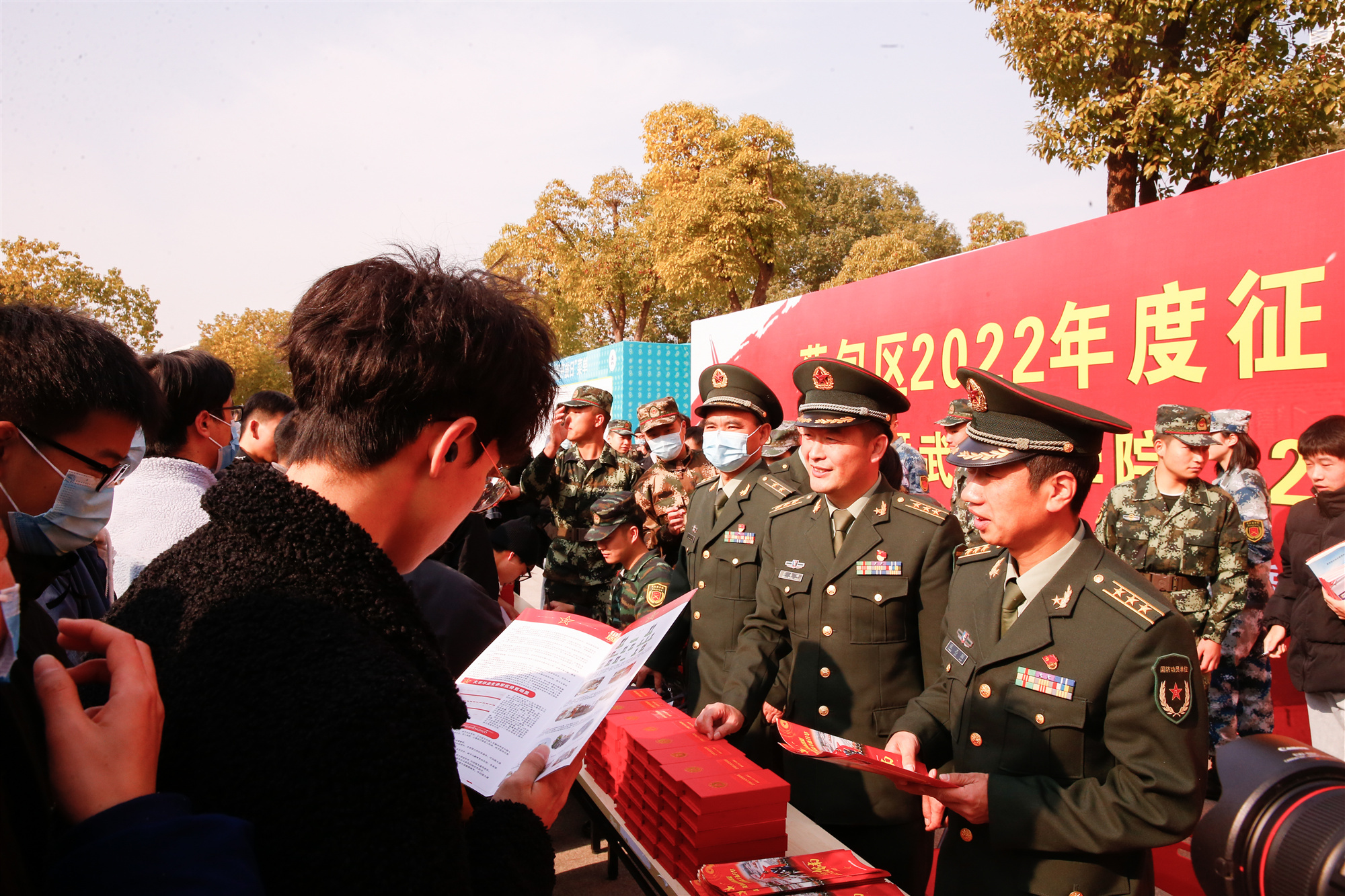 征兵现场咨询会上,学生们积极了解入伍政策