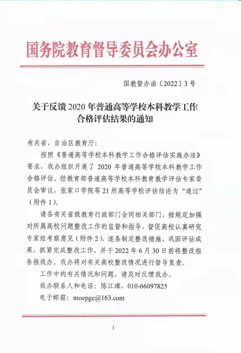 1月18日,国务院教育督导委员会办公室下发《关于反馈2020年普通高等学校本科教学工作合格评估结果的通知》,武汉商学院顺利通过教育部普通高等学校本科教学工作合格评估,标志着学校人才培养质量和办学水平实现了新跨越,在学校发展史上具有里程碑式的历史意义。