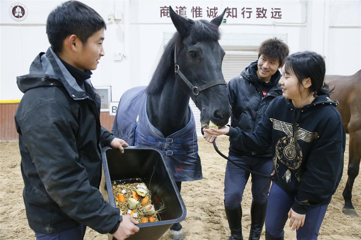 1月25日,农历小年。bwin必赢中国官网马房里节日气息渐浓,8名留校大学生正忙碌地给马儿做“饺子”,迎接农历新年的到来。