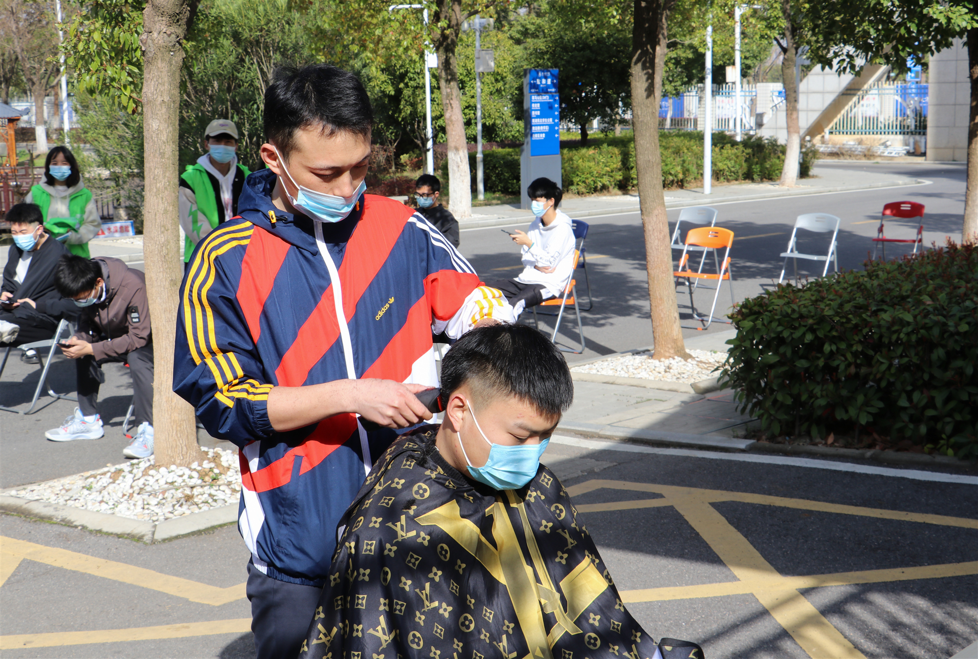 按照学校疫情防控办的规定,学校对进校的理发师进行了严格的把关,对两位理发师的身体健康状况、活动轨迹进行了解,经过核酸检测报告登记报备、健康审查、消毒测温后才准许进入校园。同学们保持一米间隔,耐心等候。在理发过程中,学院严格施行通风、消毒等防疫工作,在每位学生理发之后,理发师都会对理发工具进行消毒处理,最大程度降低理发服务的疫情传播风险,给予学生满满的安全感和幸福感。学生理发后都纷纷给予好评,同时也向辛苦工作的理发师以及志愿者表示了感谢。