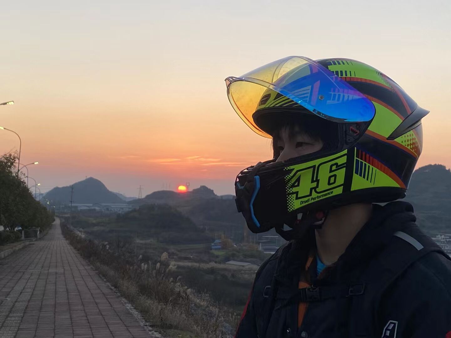 2月20日,即将返校的龙梵收拾好行李,戴上头盔,穿好护具,从贵州铜仁出发,开始了为期三天的返校旅程。在途径湘西边界的古丈县时,龙梵见证了一次真正的日出,太阳从地平线上升起,照亮了原本灰暗的天空,也照亮了龙梵的心,离家的不舍和重装骑行的疲惫随之消散。“当时整个人都放松下来了,感觉自己做的这些都是有意义的,一直的坚持也是值得的。”800公里的路程,让龙梵印象最深刻的是快到武汉的时候,导航会发出提醒:前方即将进入武汉市。“那种感觉很复杂,仿佛学校的样子突然一下就出现在我面前,很激动也很亲切”,龙梵笑着说。