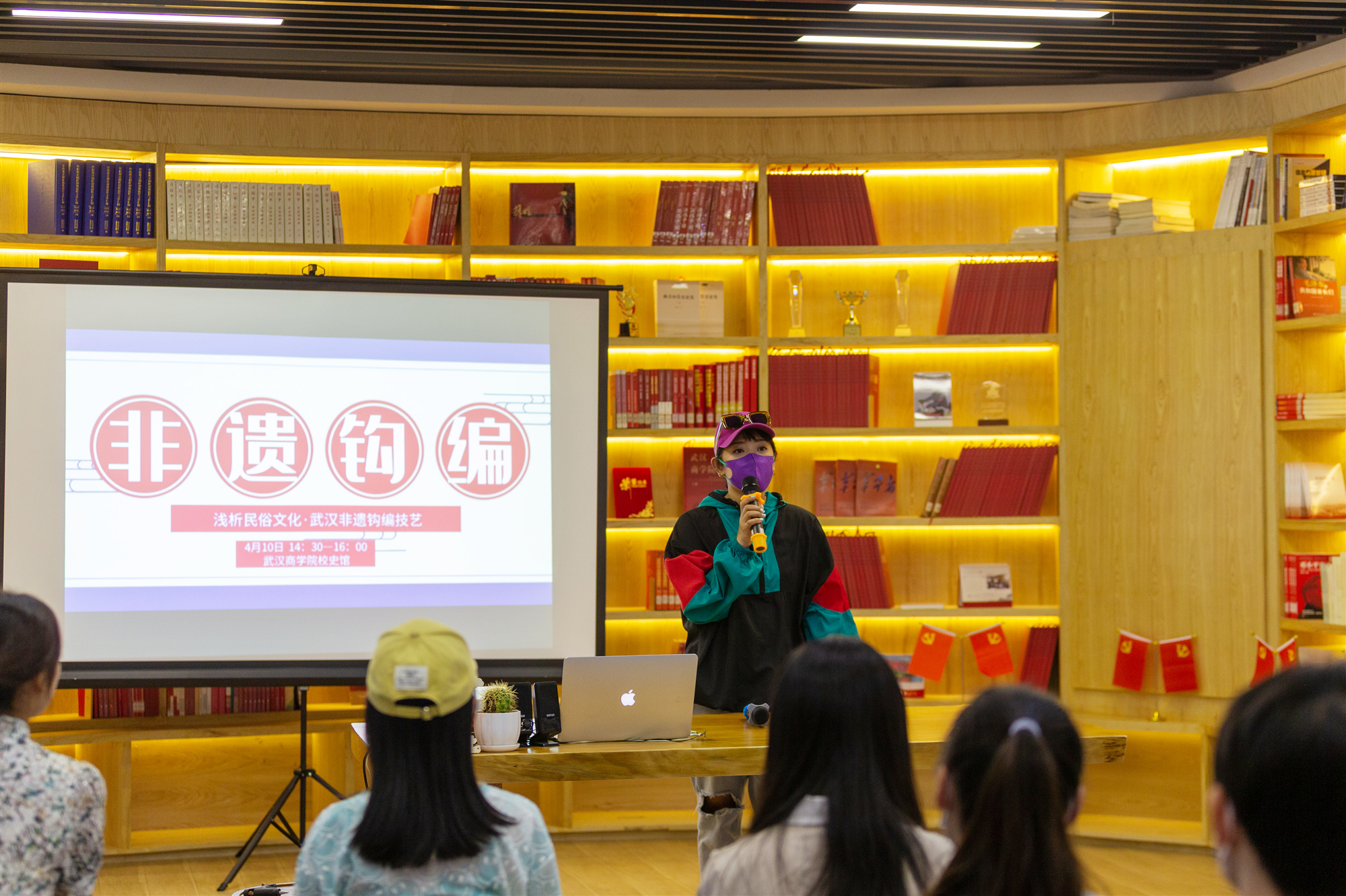 本网讯 一根钩针、一团毛线,一番行云流水的操作后,栩栩如生的“祥云”从手中诞生。4月10日下午,我校以“民俗文化与武汉非遗钩编技艺”为主题的国学小课在该校校史馆正式开讲。在武汉非物质文化遗产毛线钩编技艺第四代传人凃洁的带领下,学生们以毛线为纽带,一同走进千年历史传统,在指尖的变化勾勒中体会传统钩编技艺所渗透的历史气韵。